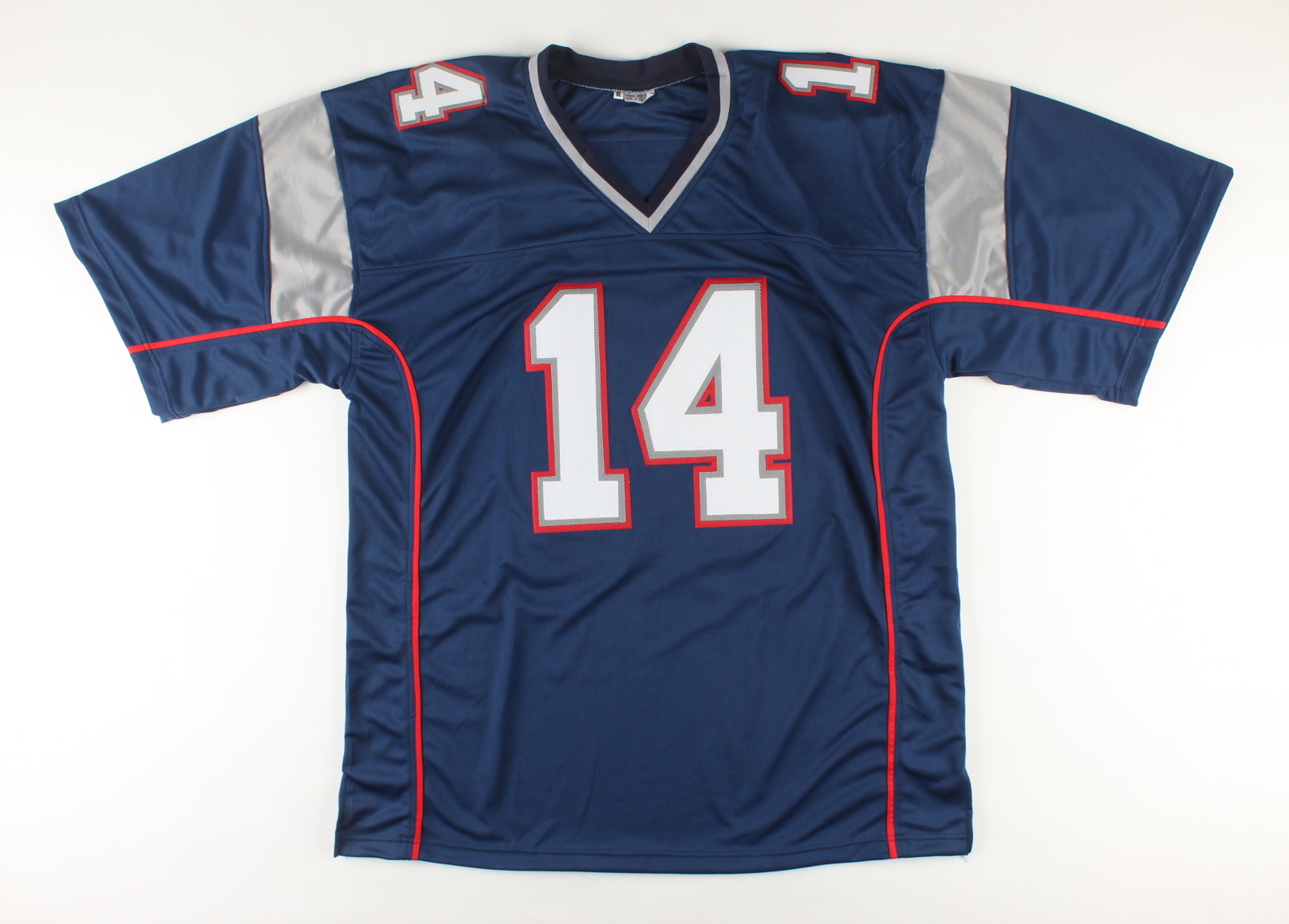 Custom on-field style jersey. Everything is sewn on, size XL. Hand-signed by Steve Grogan.