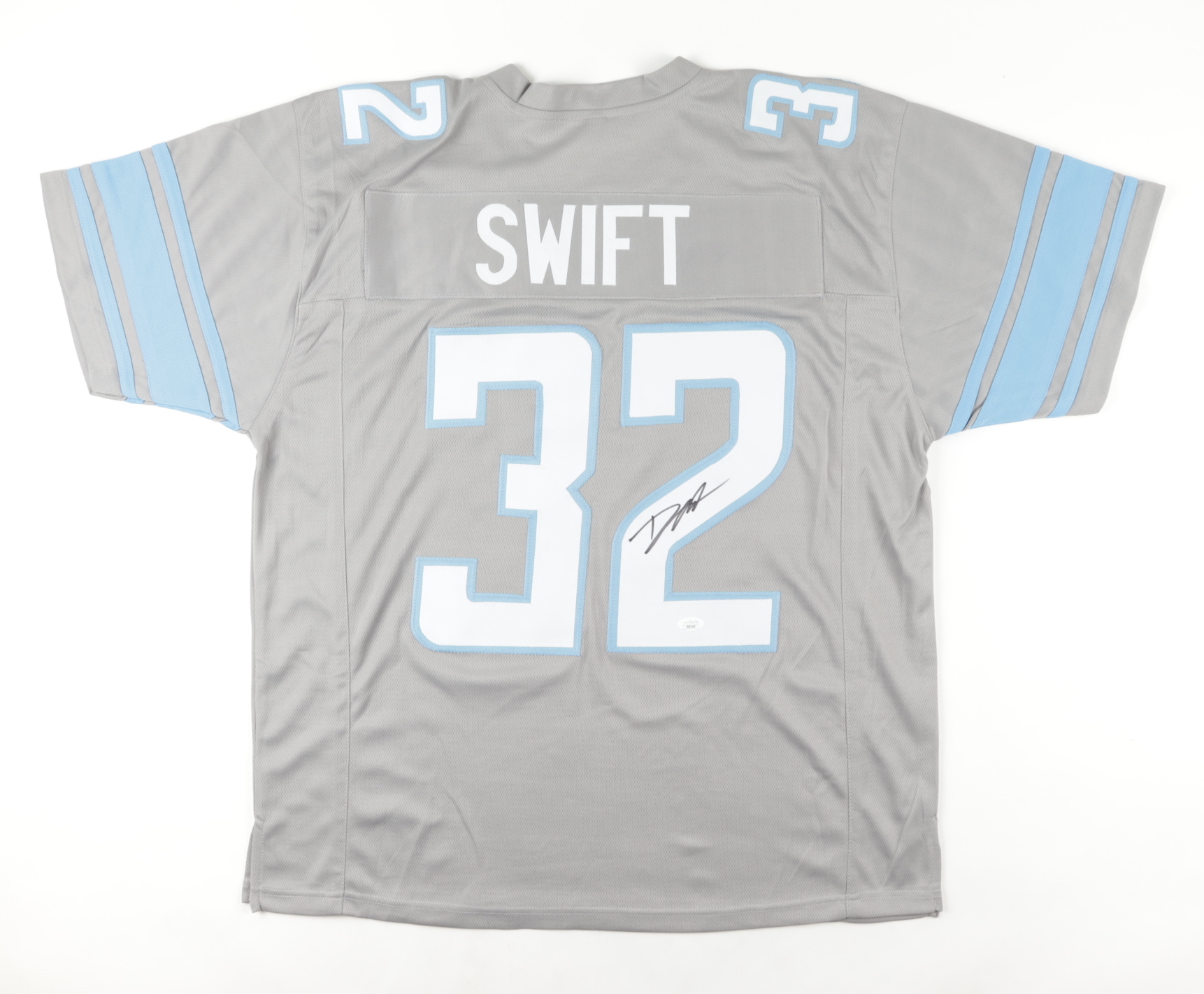 Custom on-field style jersey. Everything is sewn on, size XL. Has been hand-signed by D'Andre Swift. See photos for condition of the jersey.