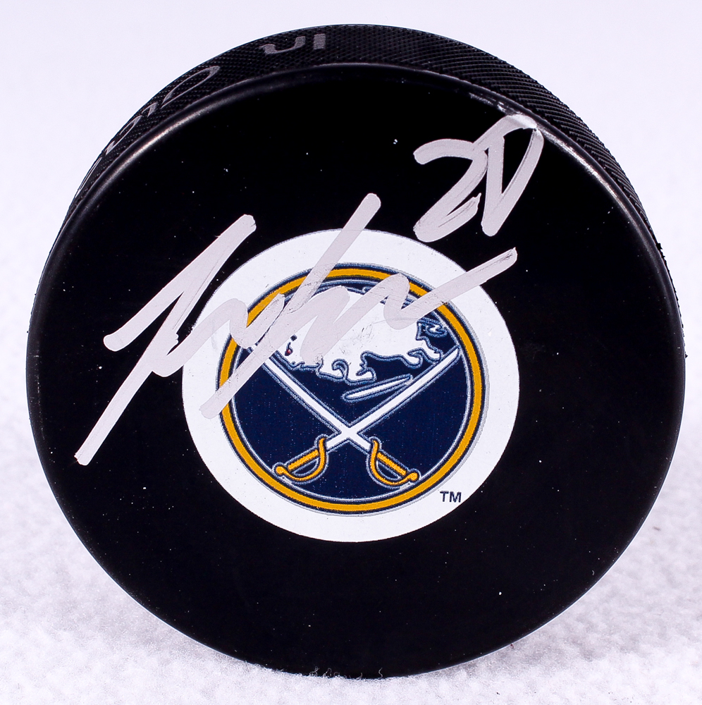 Zemgus Girgensons Signed Sabres Logo Hockey Puck (JSA COA)