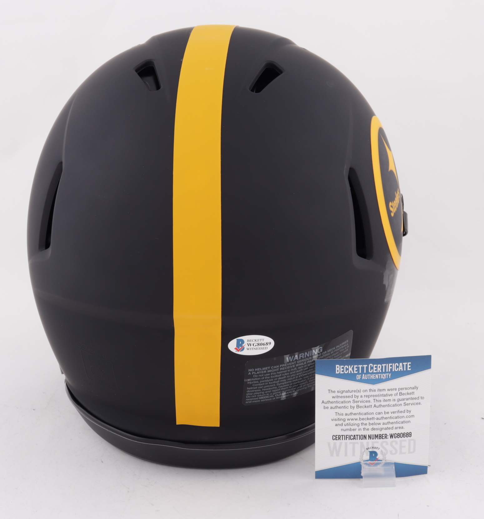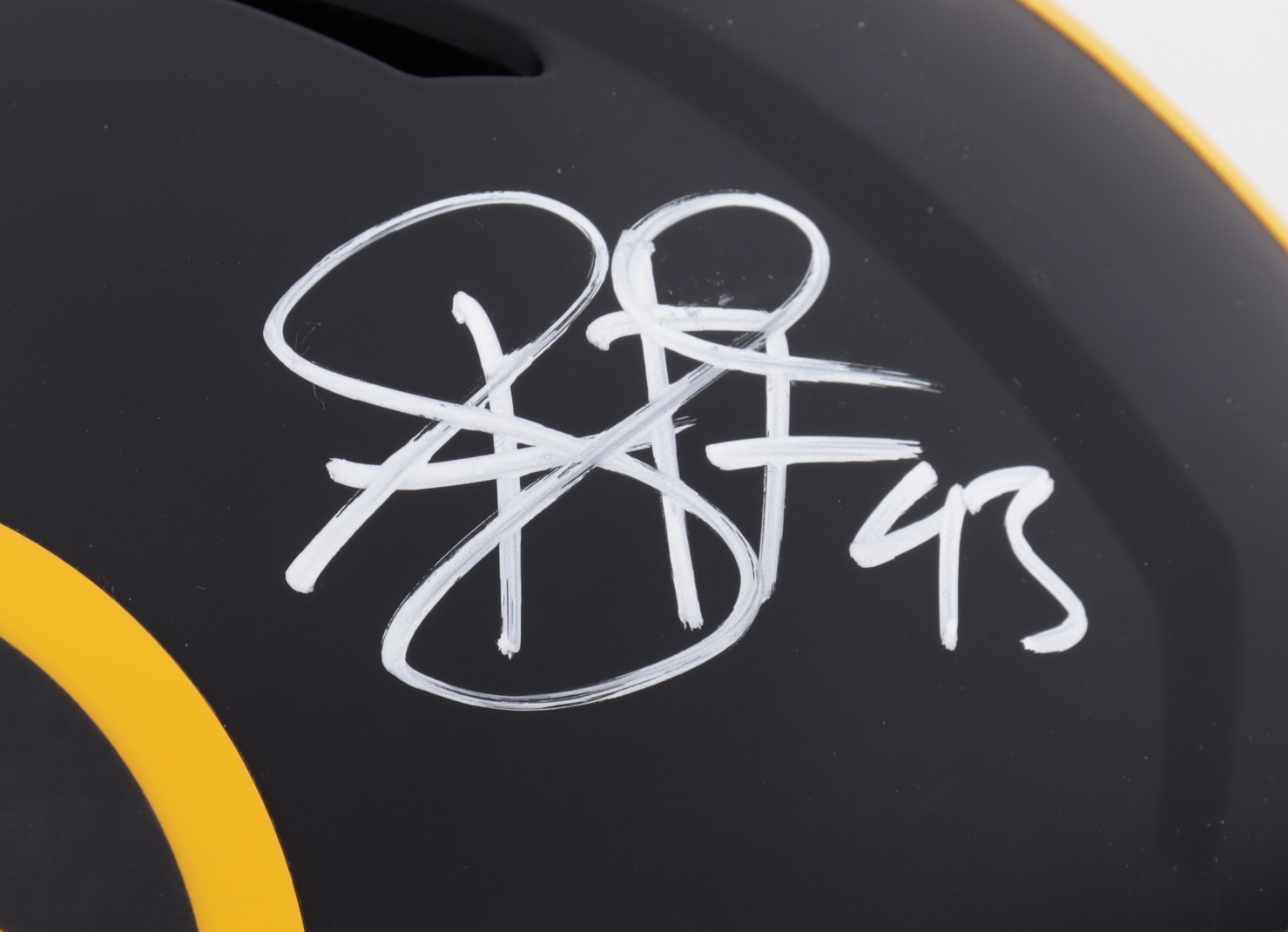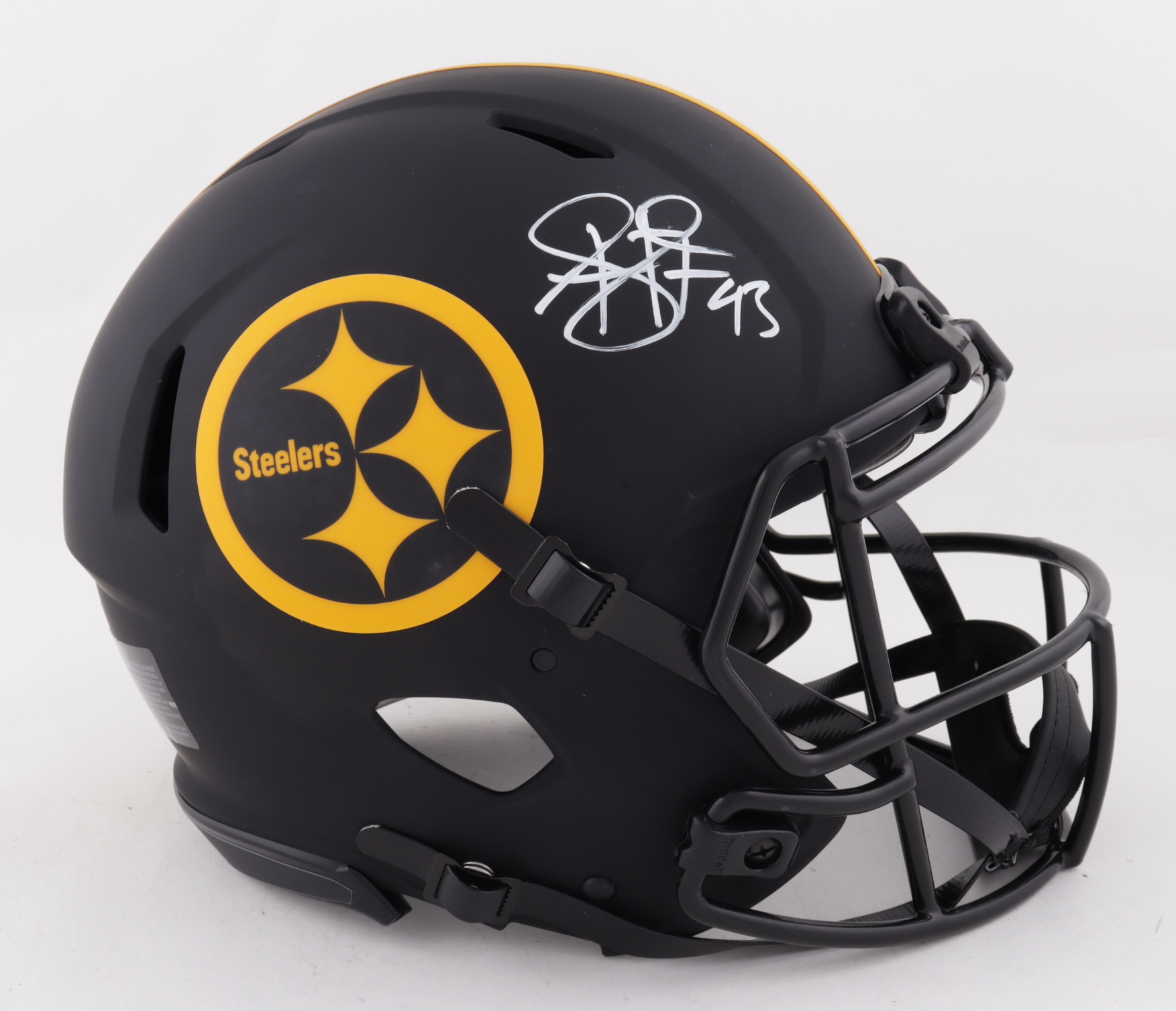 Riddell Pittsburgh Steelers full-size authentic on-field eclipse alternate speed helmet. Hand-signed by Troy Polamalu (HOF). Please note, there are scuff marks on the right side of the helmet.