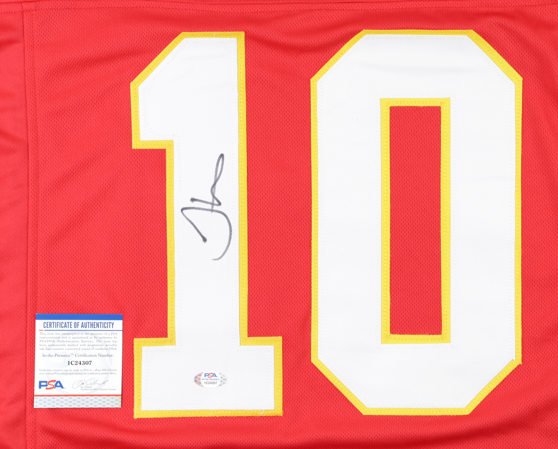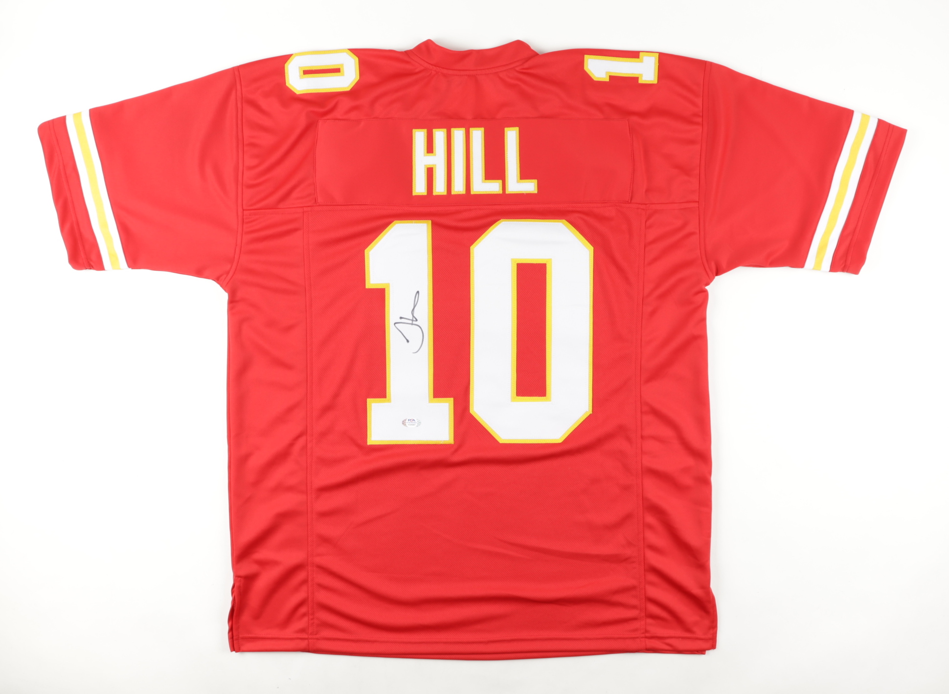 Custom on-field style jersey. Everything is sewn on, size XL. Hand-signed by Tyreek Hill.
