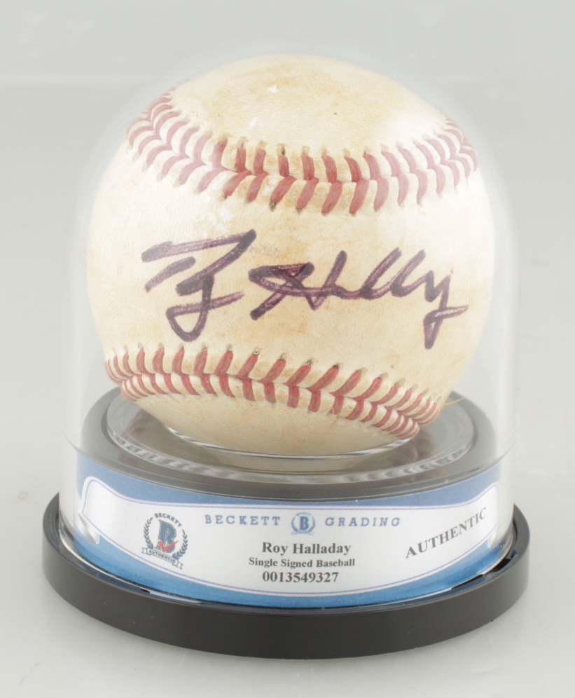 Roy Halladay Signed Baseball with Beckett Display Case (BGS Encapsulated)