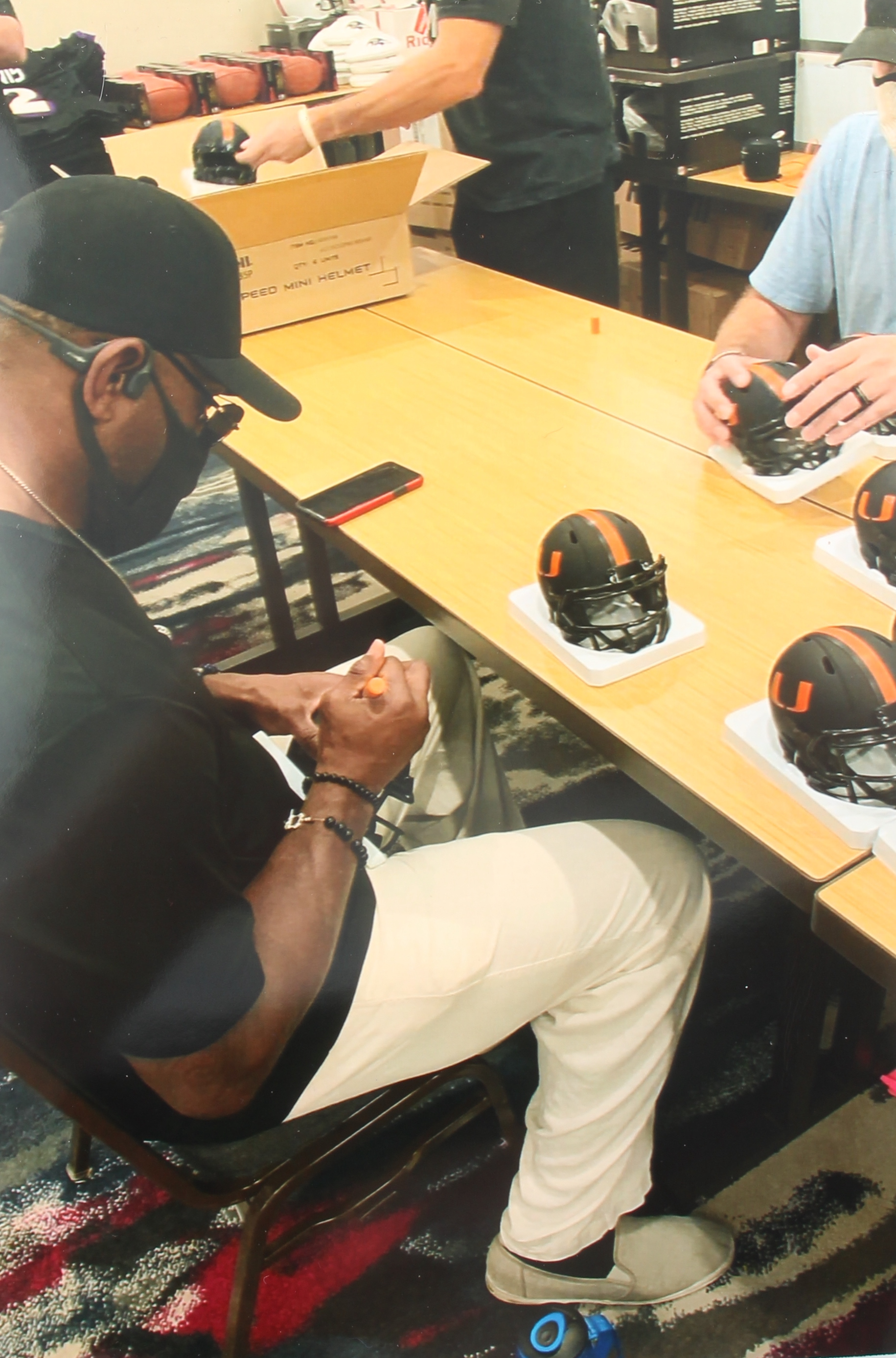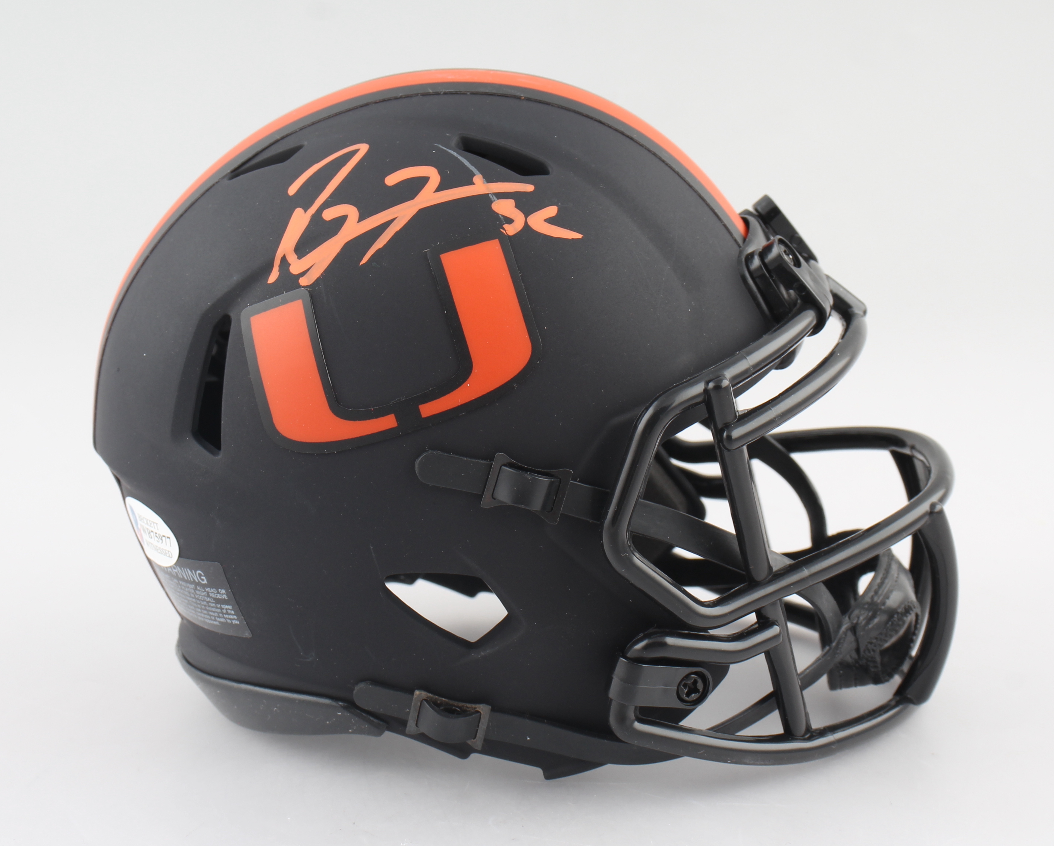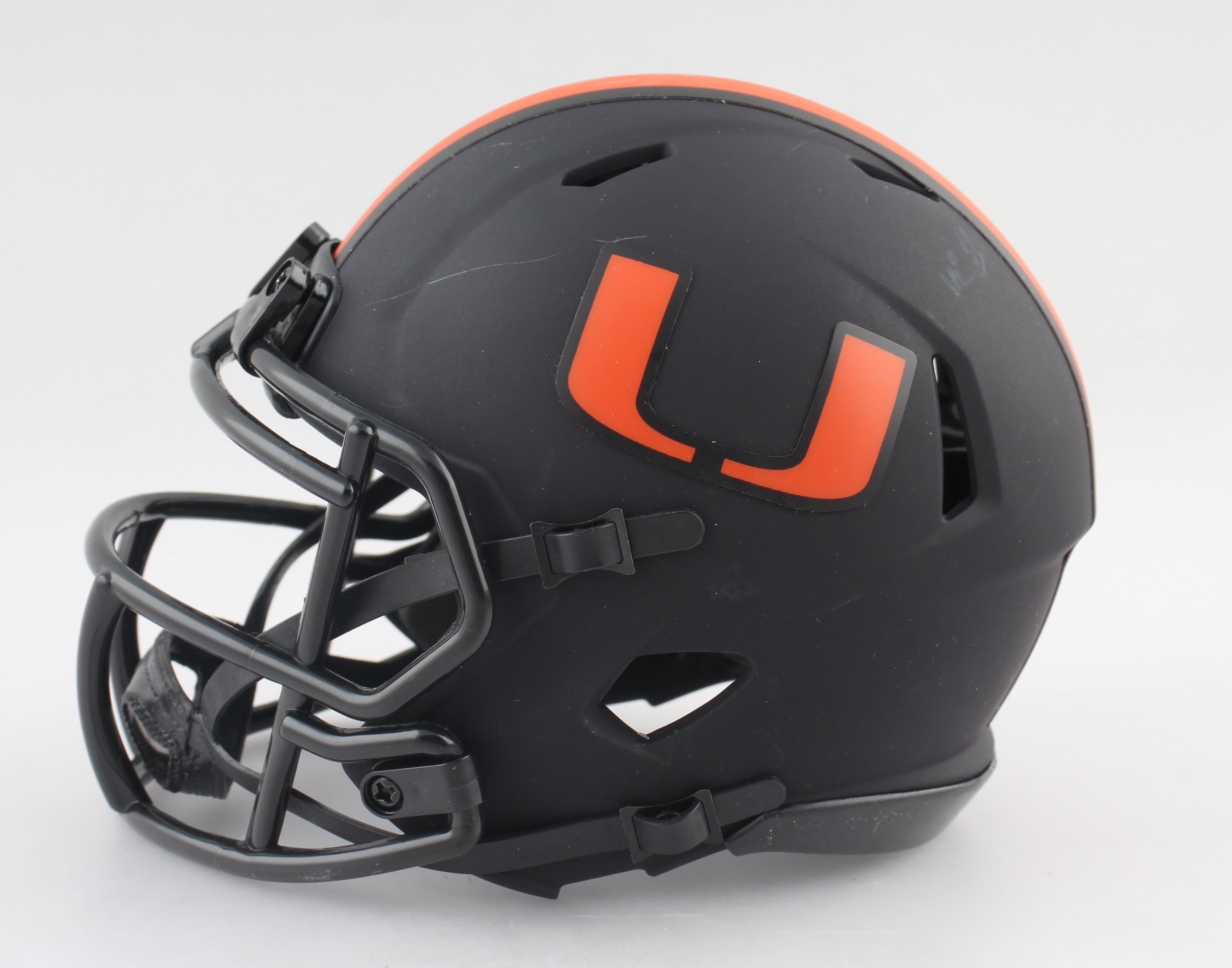 Riddell Miami Hurricanes Eclipse Alternate Speed Mini Helmet has been hand-signed by Ray Lewis (HOF).