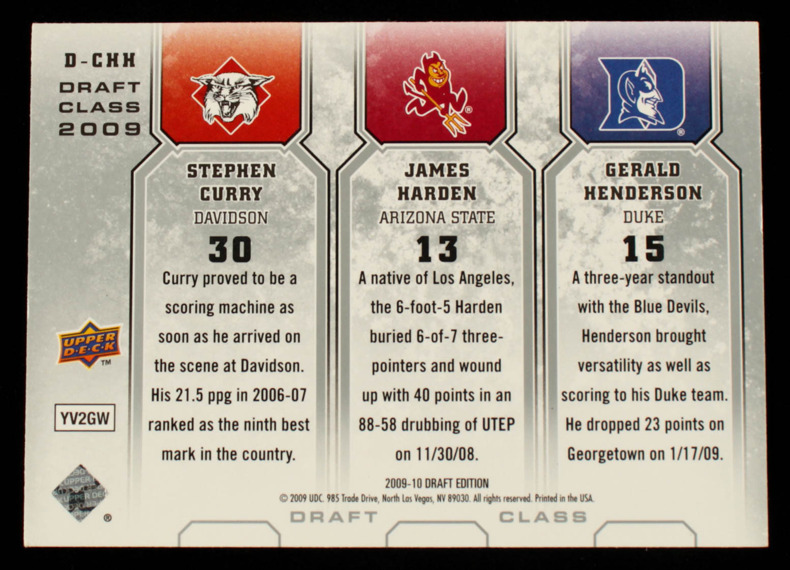 Gerald Henderson / James Harden / Stephen Curry 2009-10 Upper Deck Draft Edition Draft Class #DCHH