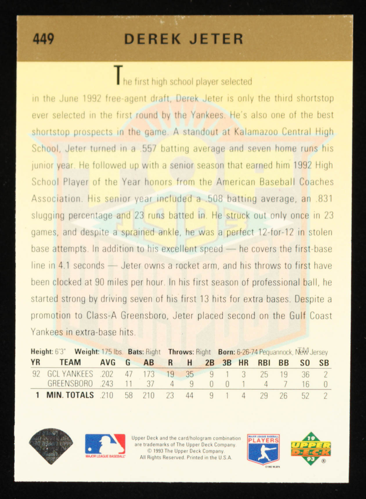 Derek Jeter 1993 Upper Deck #449 RC