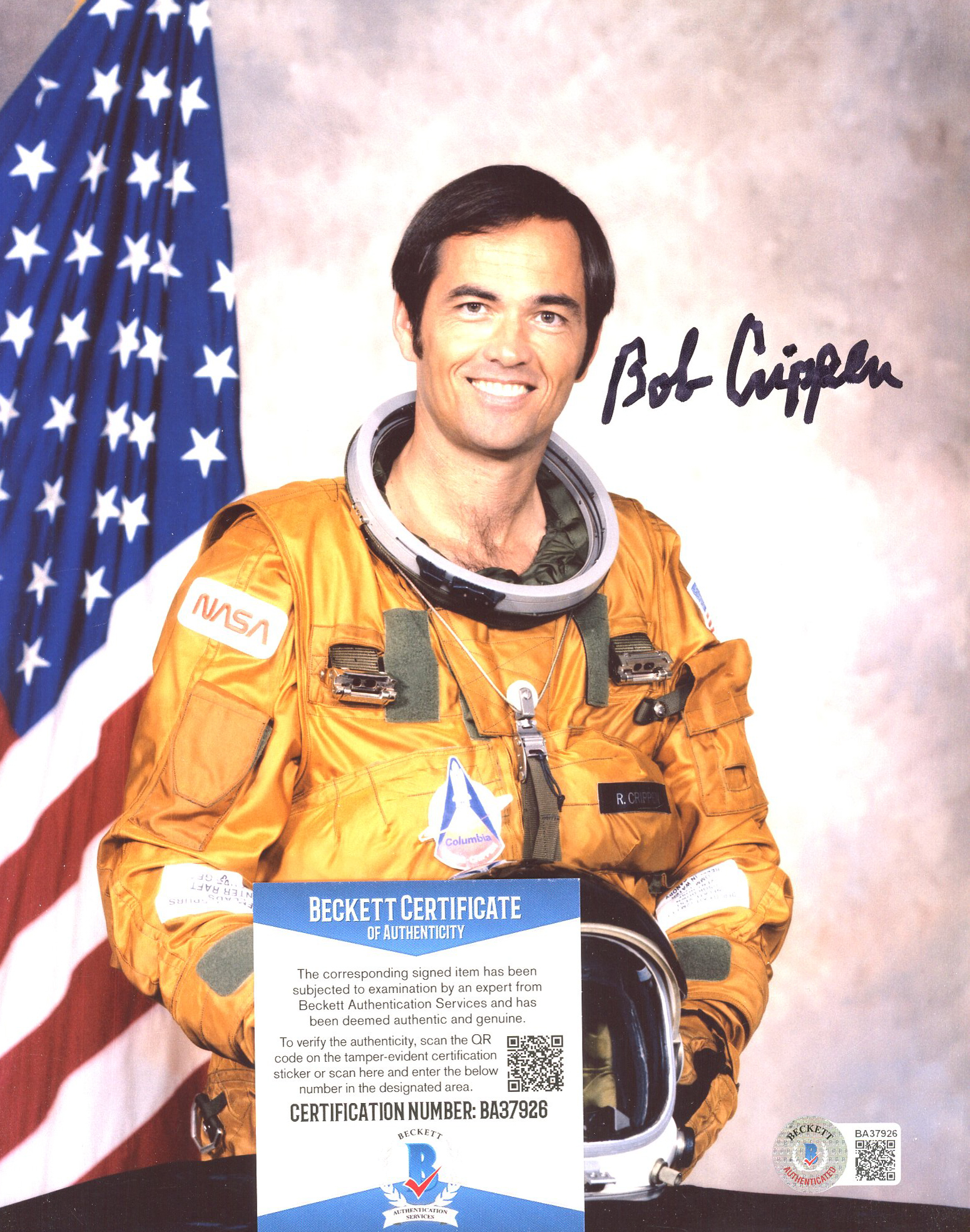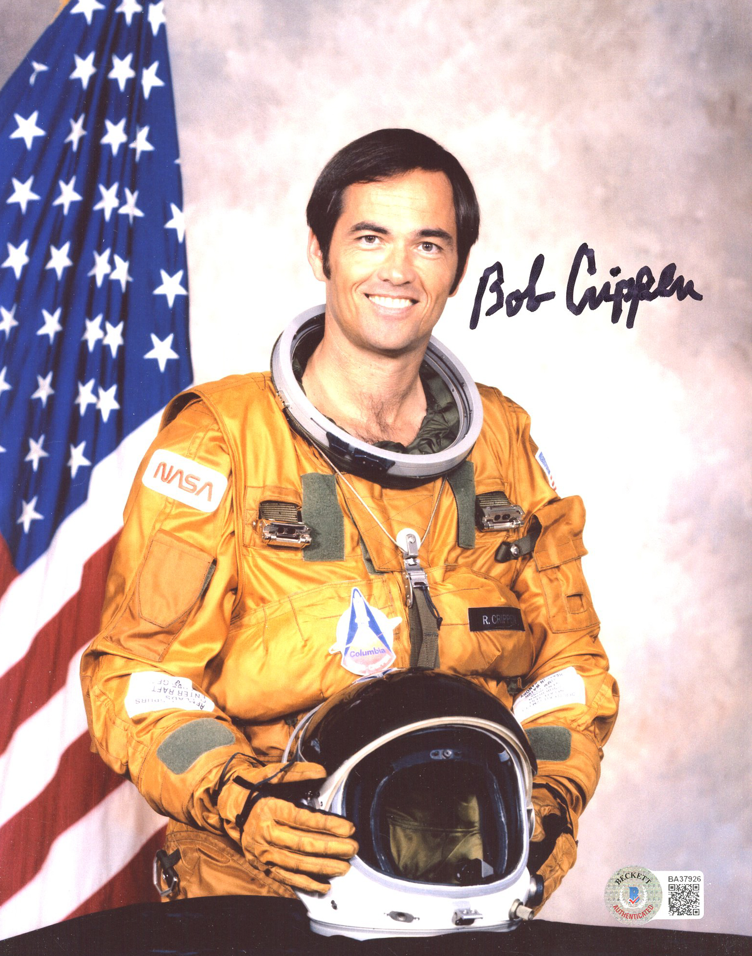 Photo measures 8" x 10" in size and has been hand-signed by Bob Crippen.