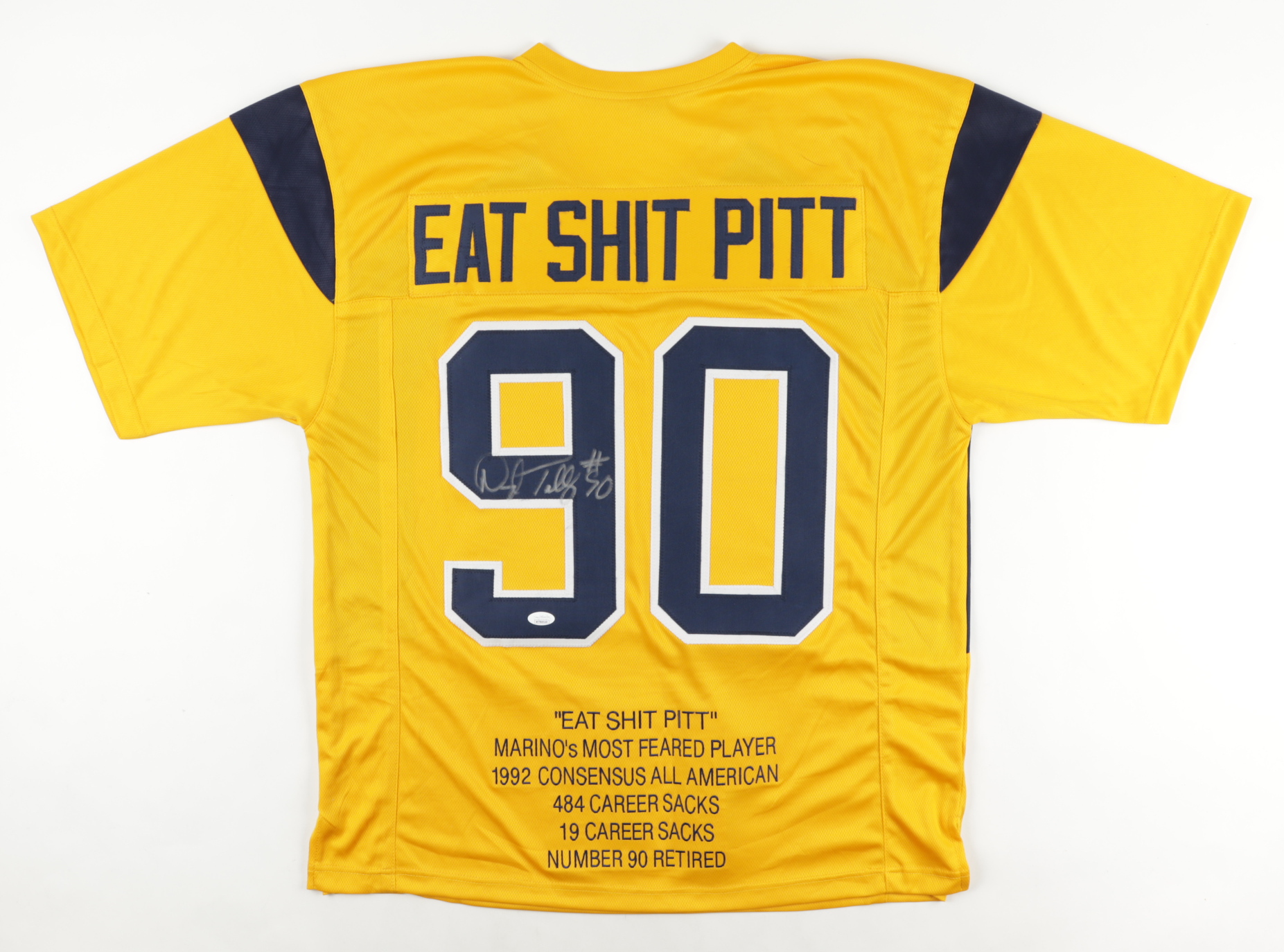 Custom on-field style jersey. Everything is sewn on, size XL. Hand-signed by Darryl Talley. Talley's career stats are custom stitched onto the jersey below the reverse numbers.