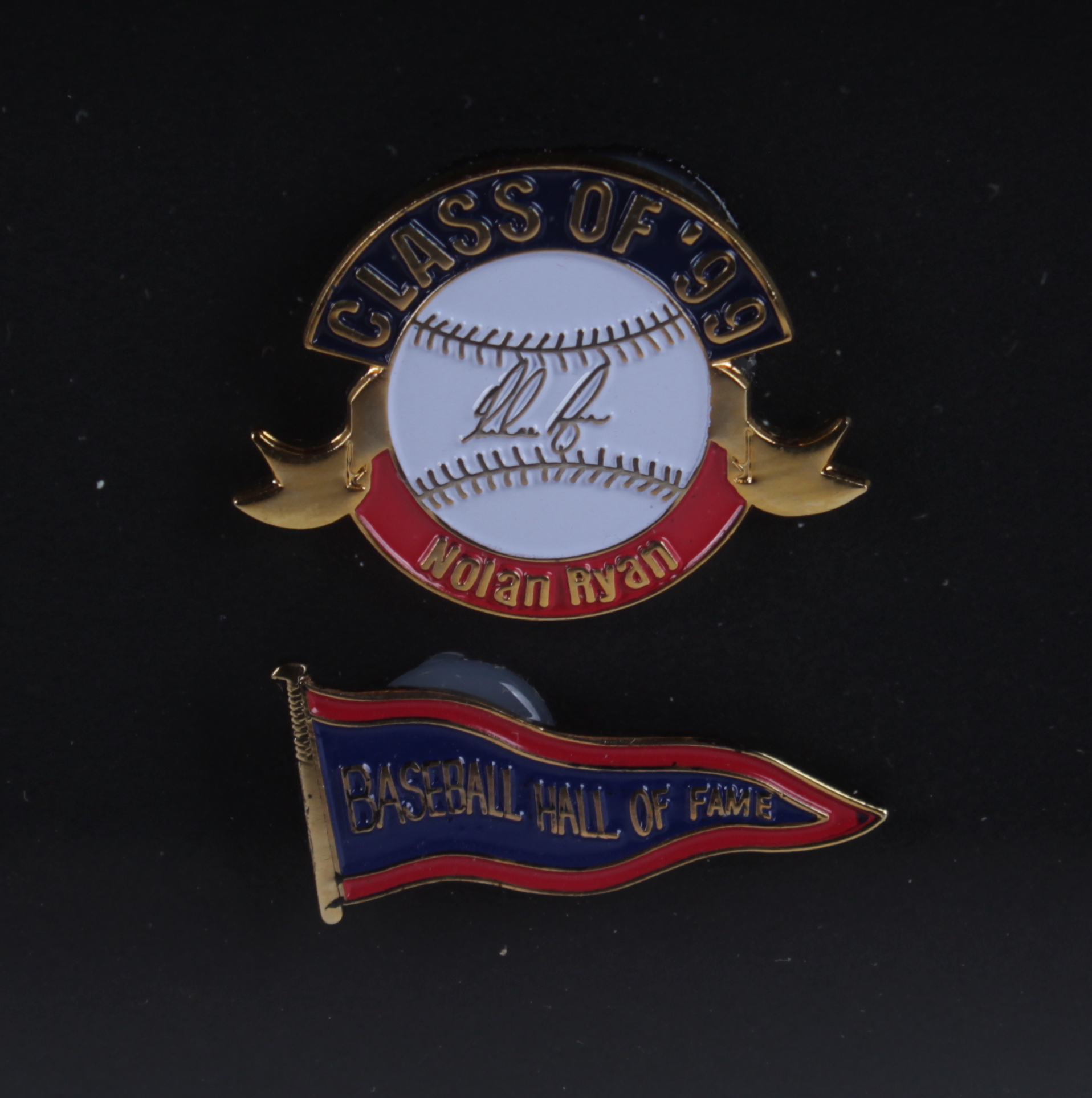 Nolan Ryan Signed 32x36 Custom Framed Jersey Display with (2) HOF Induction Pins (JSA COA)