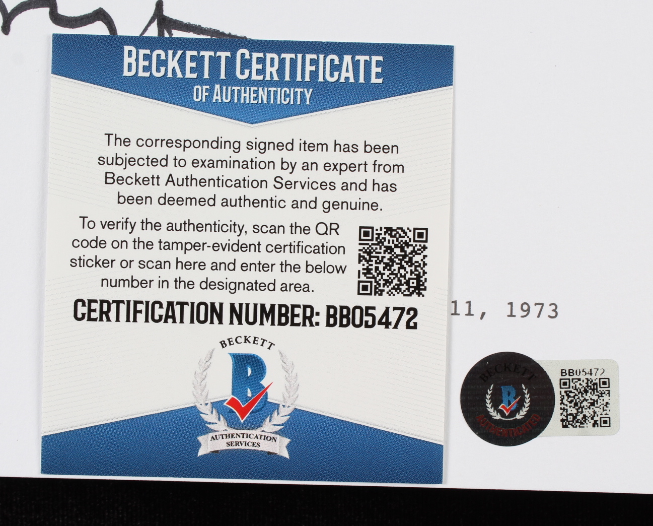 The lot / autograph(s) includes an official Beckett Authentication Services serially-numbered hologram and matching COA for authenticity purposes.