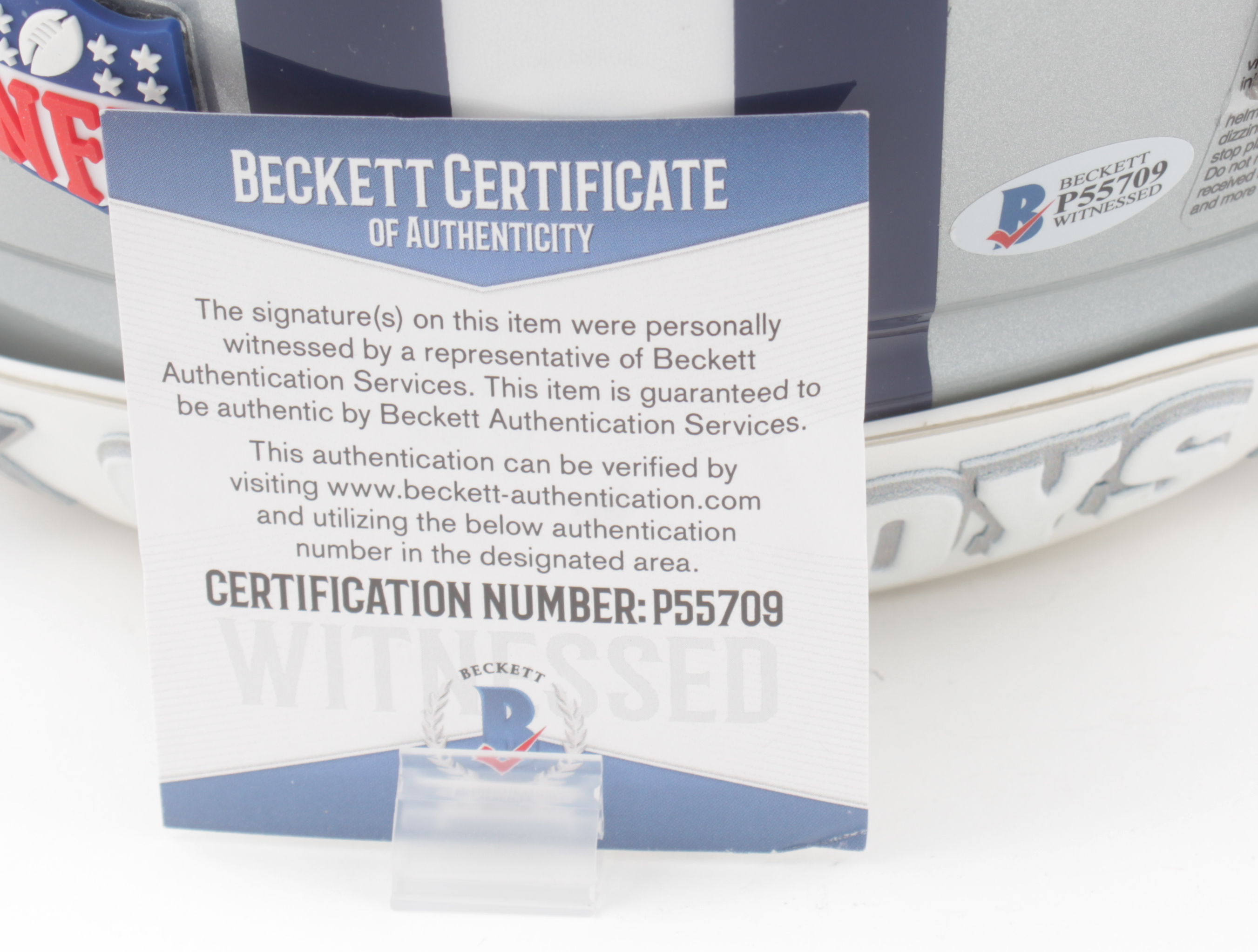 The lot / autograph(s) includes an official Beckett Authentication Services serially-numbered hologram and matching COA for authenticity purposes. The signing of this item was witnessed by Beckett. Authentication: Beckett COA