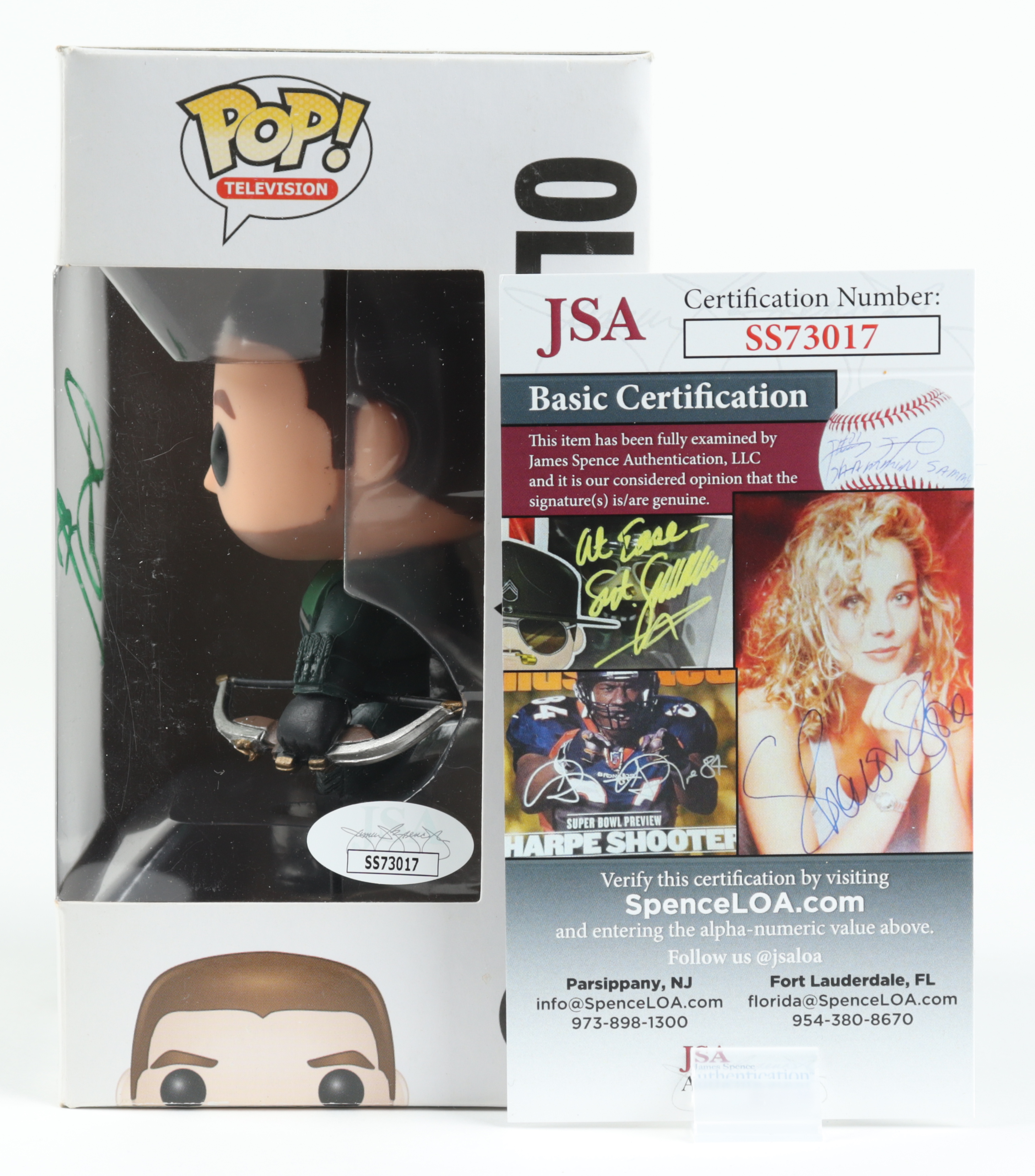 Funko Pop! figure measures approximately 4" tall. Hand-signed on the packaging by Stephen Amell.