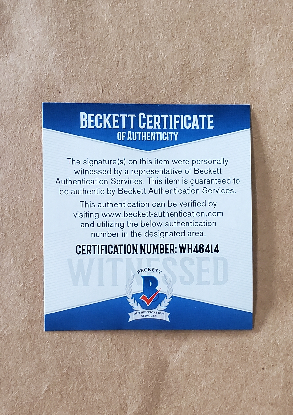 The lot / autograph(s) includes an official Beckett Authentication Services serially-numbered hologram and matching COA for authenticity purposes. The signing of this item was witnessed by Beckett.