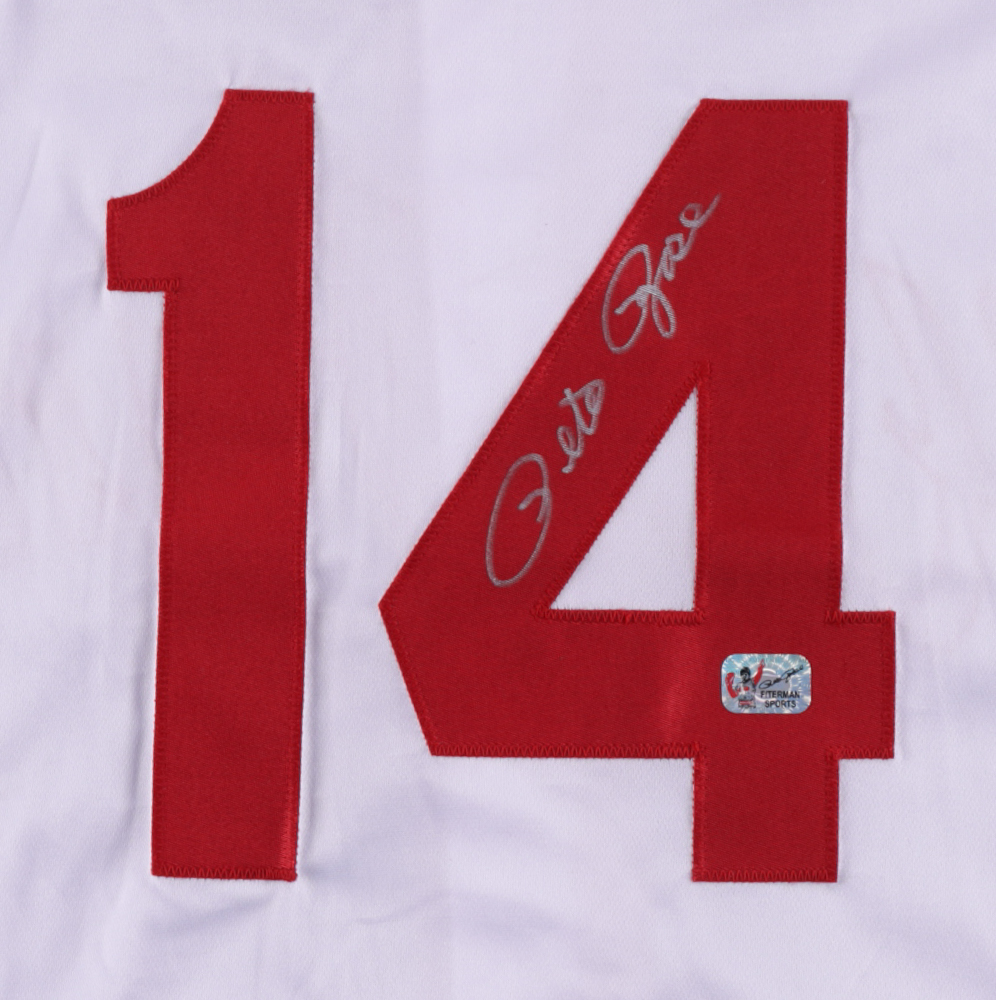 Custom on-field style jersey. Everything is sewn on, size XL. Hand-signed by Pete Rose.