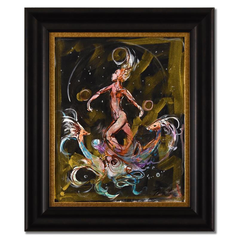 This is an original mixed media painting on canvas, hand signed and thumb printed by Marta Wiley. This piece comes custom framed. Includes Letter of Authenticity. Measures approx. 21.5" x 25.5" (frame); 14.5" x 18.5" (image).