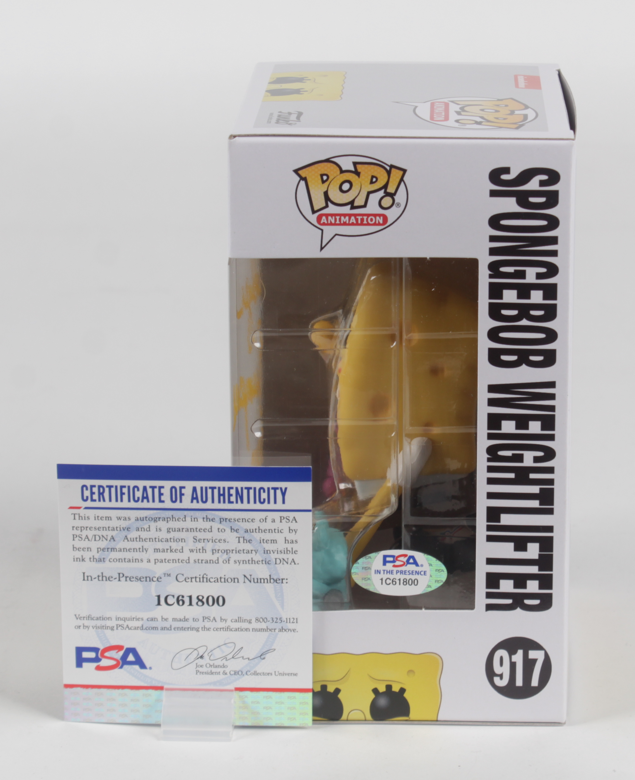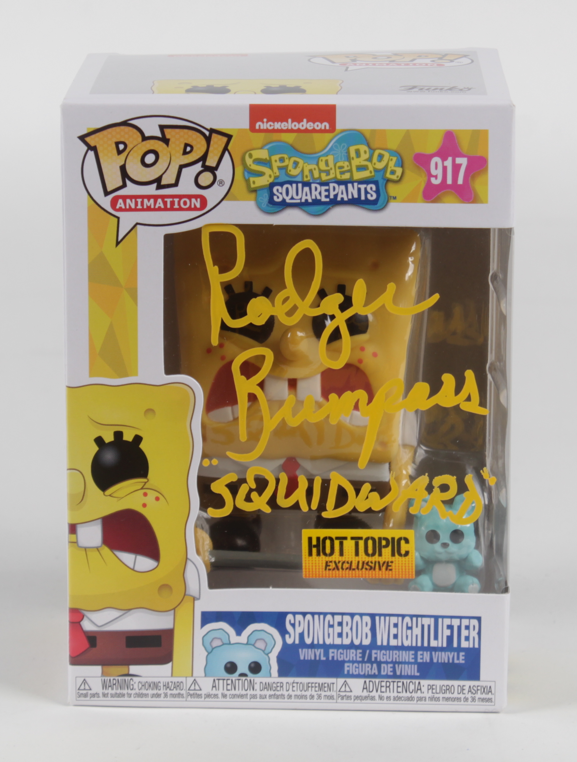 Rodger Bumpass Signed "SpongeBob Squarepants" #917 SpongeBob Weightlifter Funko Pop! Vinyl Figure Inscribed "Squidward" (PSA)