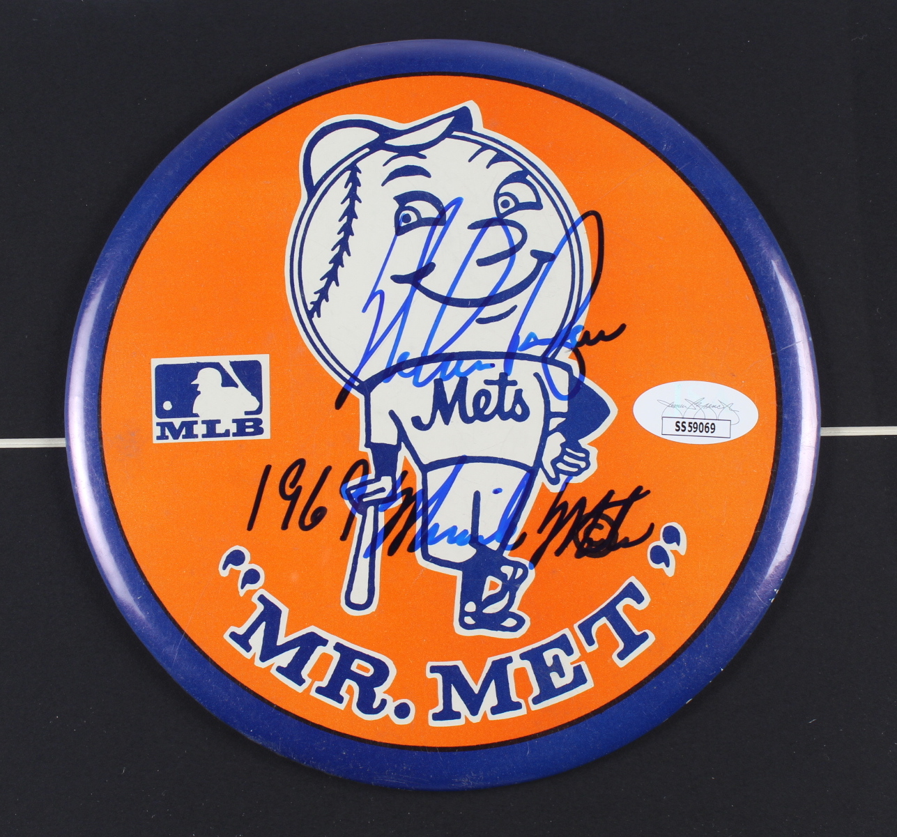 Nolan Ryan Signed Mets 14x18 Custom Framed Wall Sized Vintage Mets Metal Pin Display Inscribed "1969 Miracle Mets" (JSA COA)