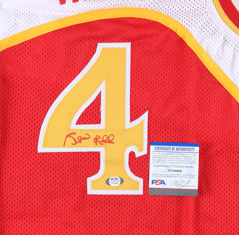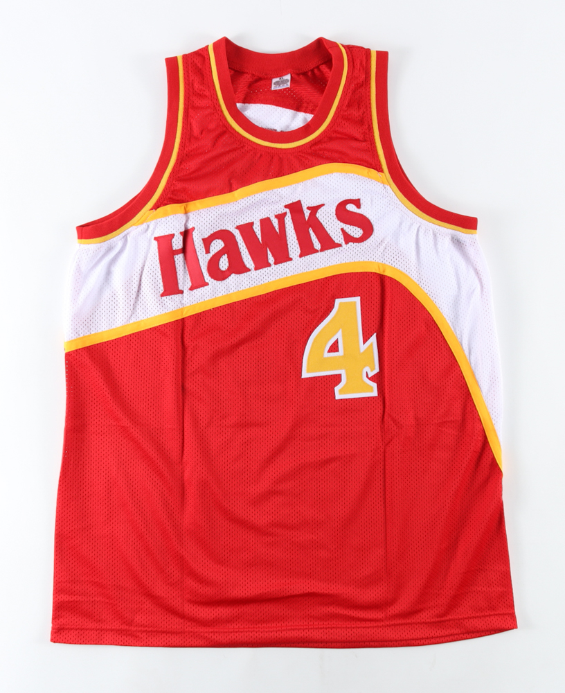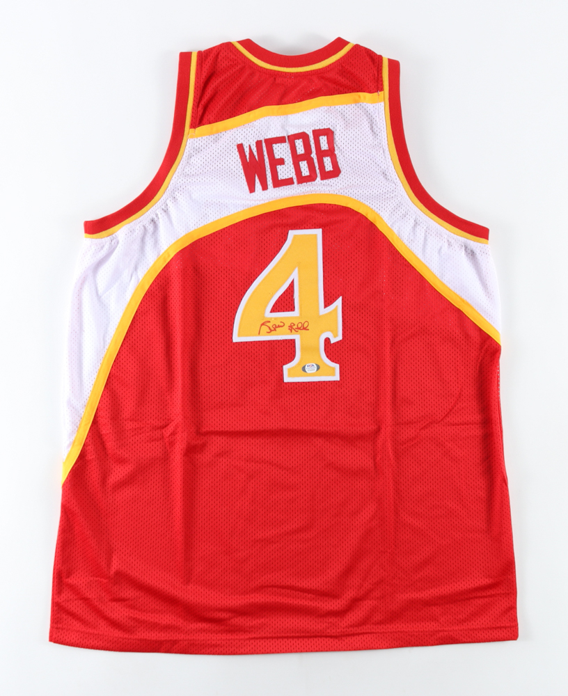 Custom on-court style jersey. Everything is sewn on, size XL. Hand-signed by Spud Webb.