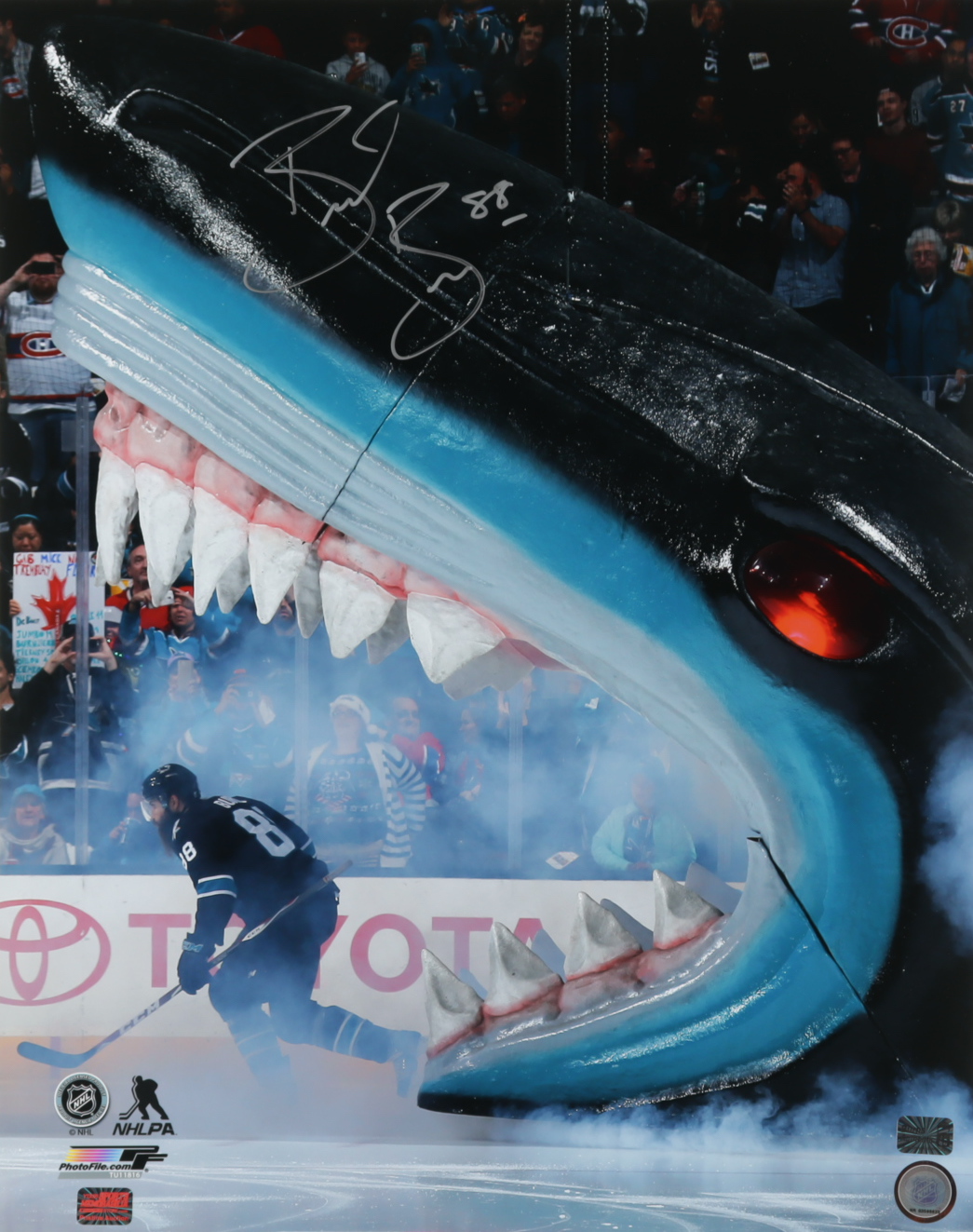 Photo measures 16" x 20" in size and has been hand-signed by Brent Burns (San Jose Sharks).