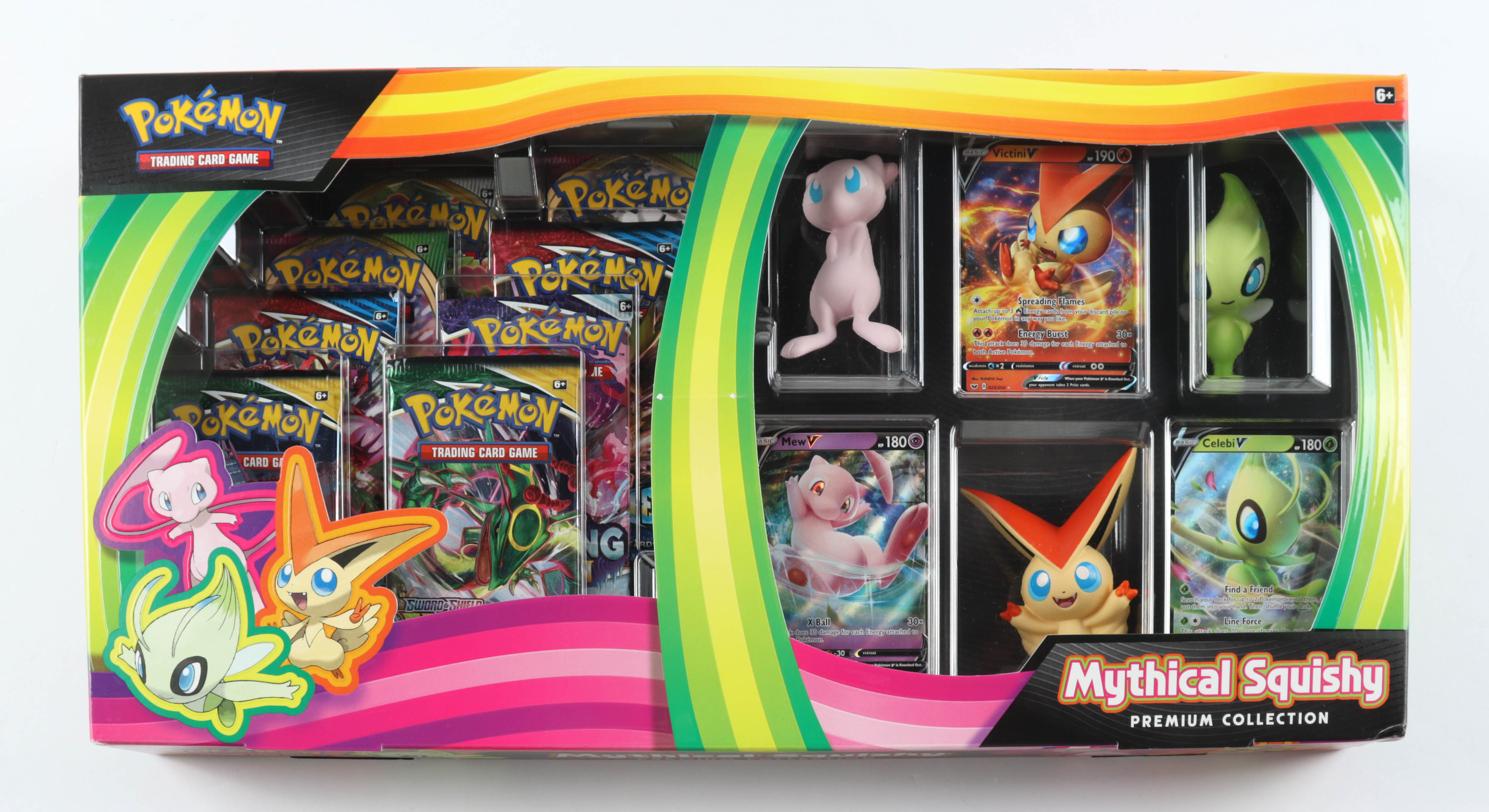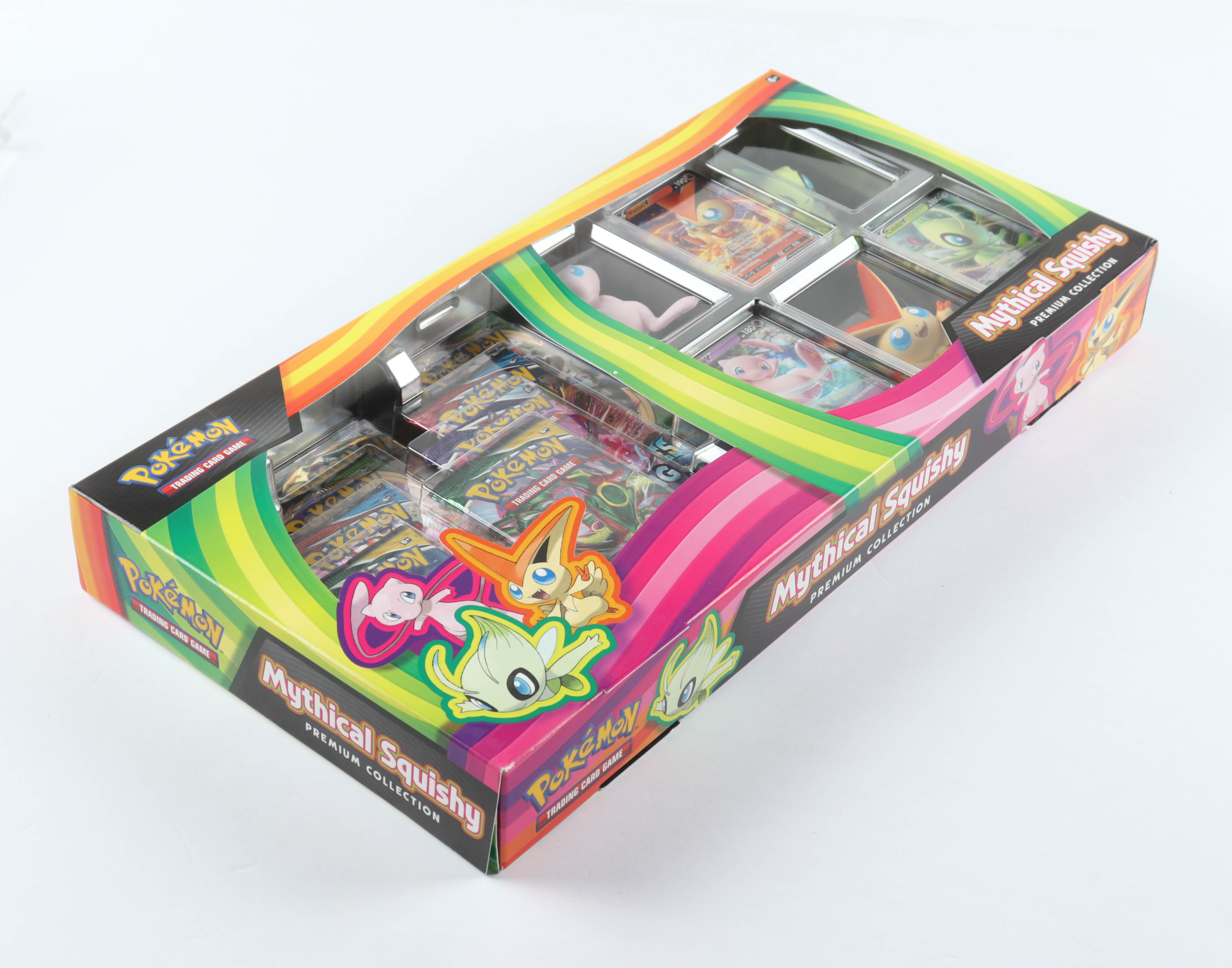 This Pokemon TCG: Mythical Squishy Premium Collection features: