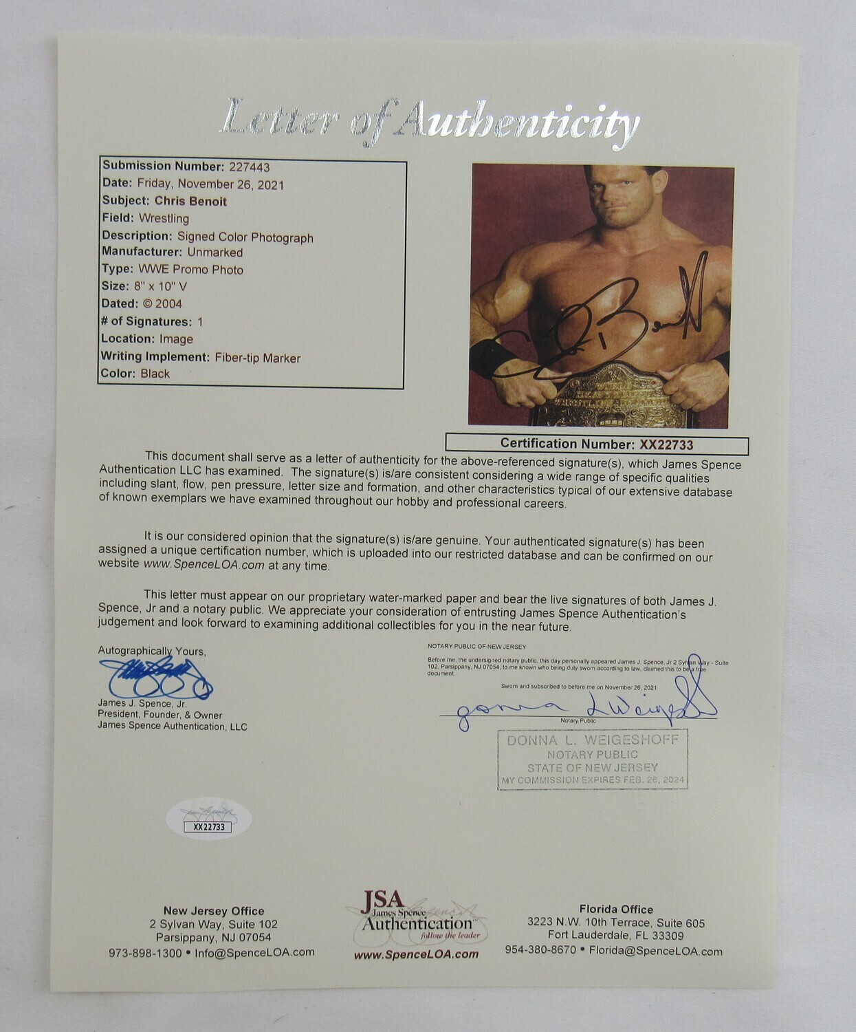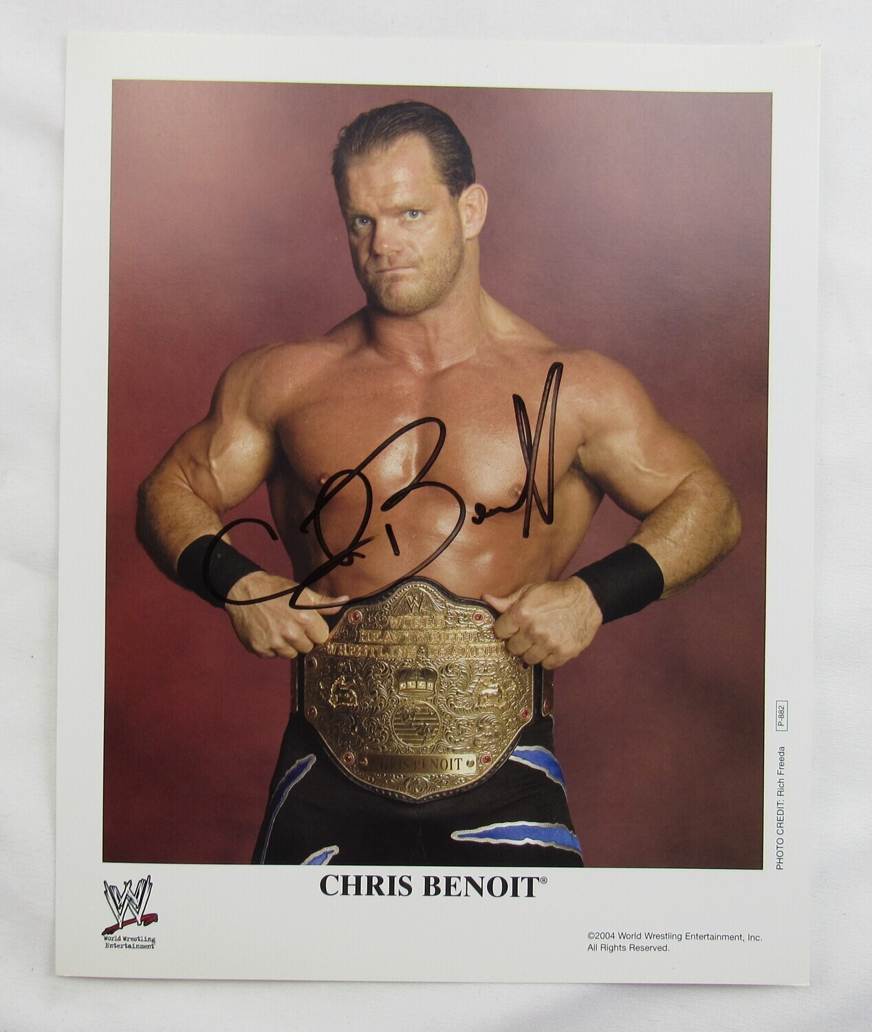 Photo measures 8" x 10" in size and has been hand-signed by Chris Benoit (D. 2007).