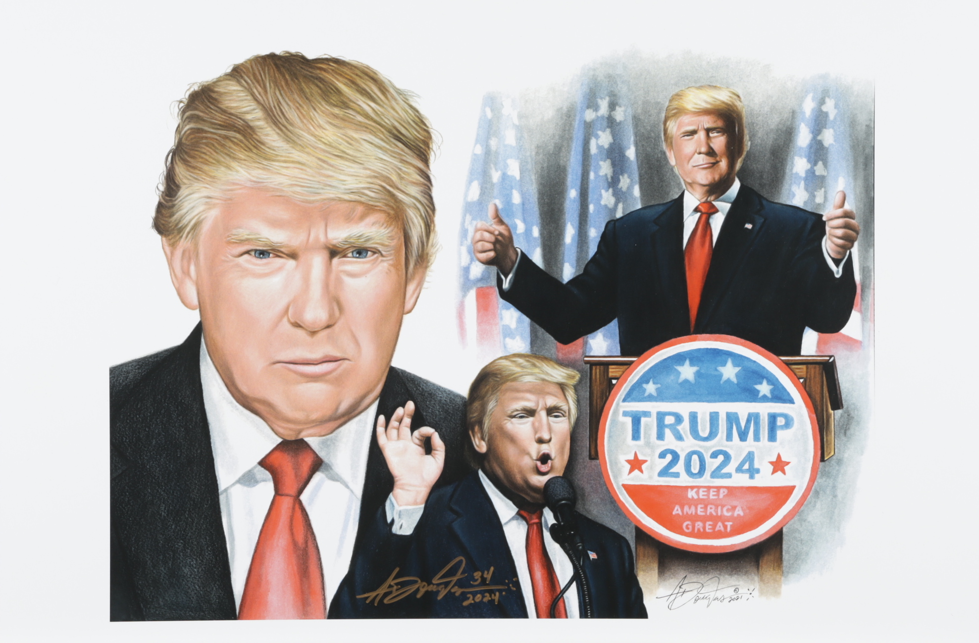 Anthony Douglas Signed LE "Donald Trump" 12x18 Art Print (Pristine Auction LOA)