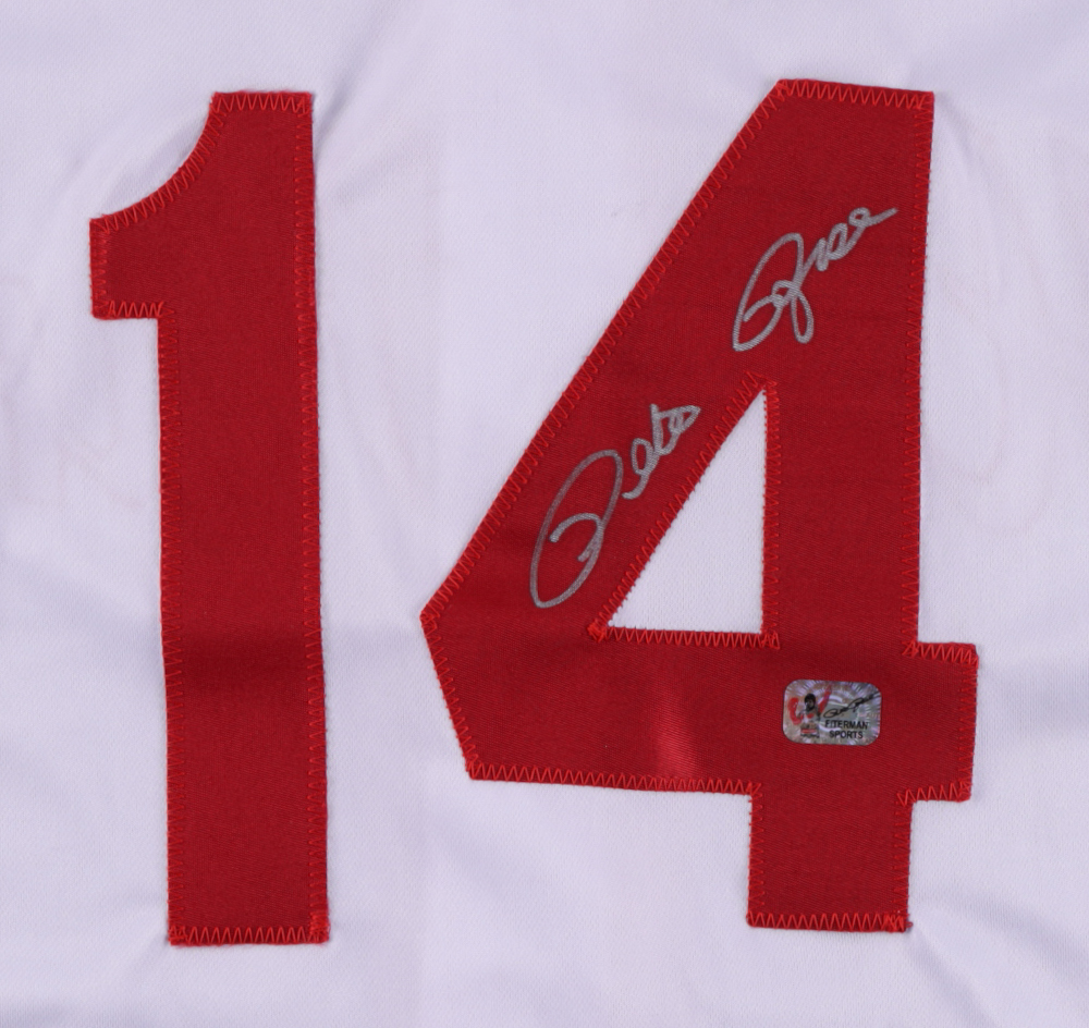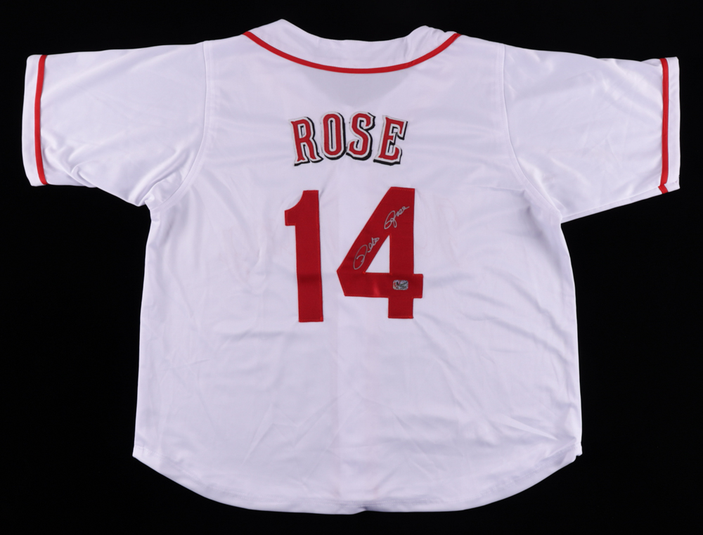 Custom on-field style jersey. Everything is sewn on, size XL. Hand-signed by Pete Rose.