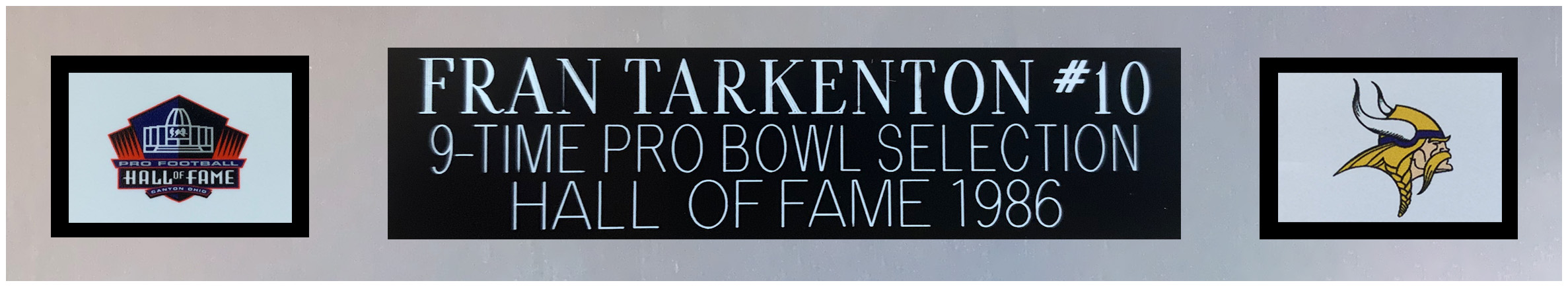 Custom framed display measures 35" x 43" in size and features a custom on-field style jersey, hand-signed and inscribed by Fran Tarkenton (Minnesota Vikings, HOF).