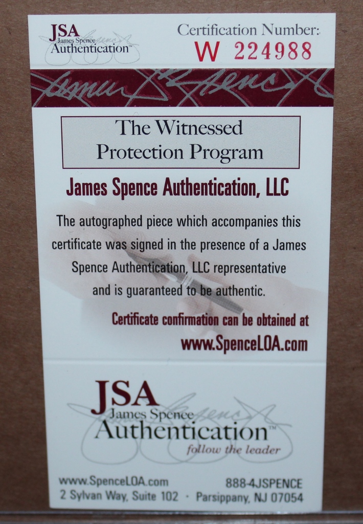The lot / autograph(s) includes an official James Spence Authentication (JSA) hologram and matching COA for authenticity purposes. The signing of this item was witnessed by JSA.