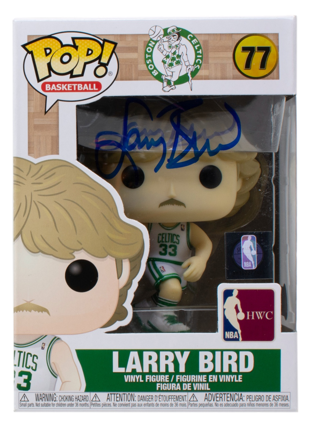 Funko Pop! vinyl figure measures approximately 4" tall and has been hand-signed on the original packaging by Larry Bird (Boston Celtics, HOF). Please note, the autograph is smudged.
