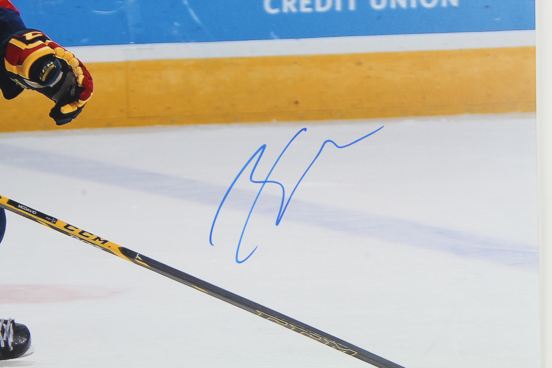 Photo measures 11" x 14" in size and has been hand-signed by Connor McDavid (Edmonton Oilers). Please note, tear on top of photo.