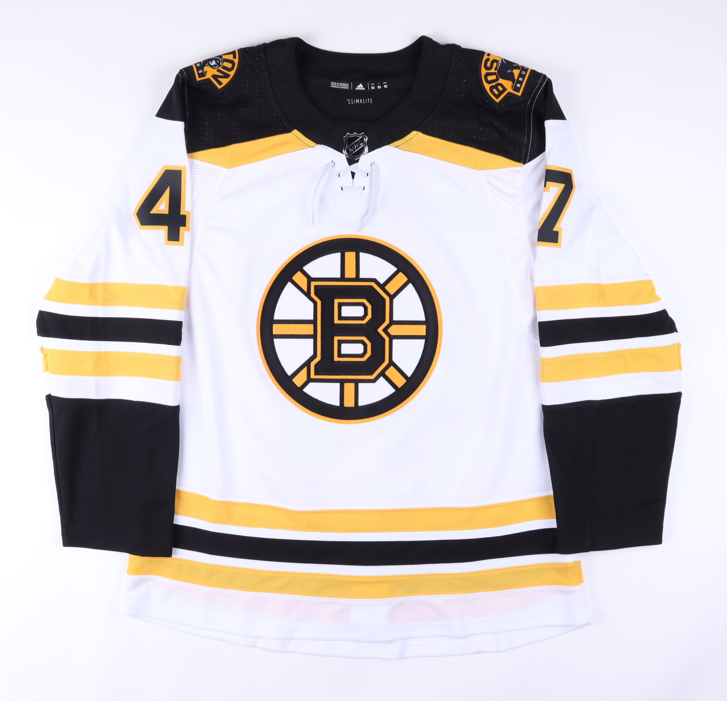Boston Bruins authentic Adidas "Climalite" jersey. Everything is sewn on, size 52. The jersey is new with tags and has been hand-signed by Torey Krug.