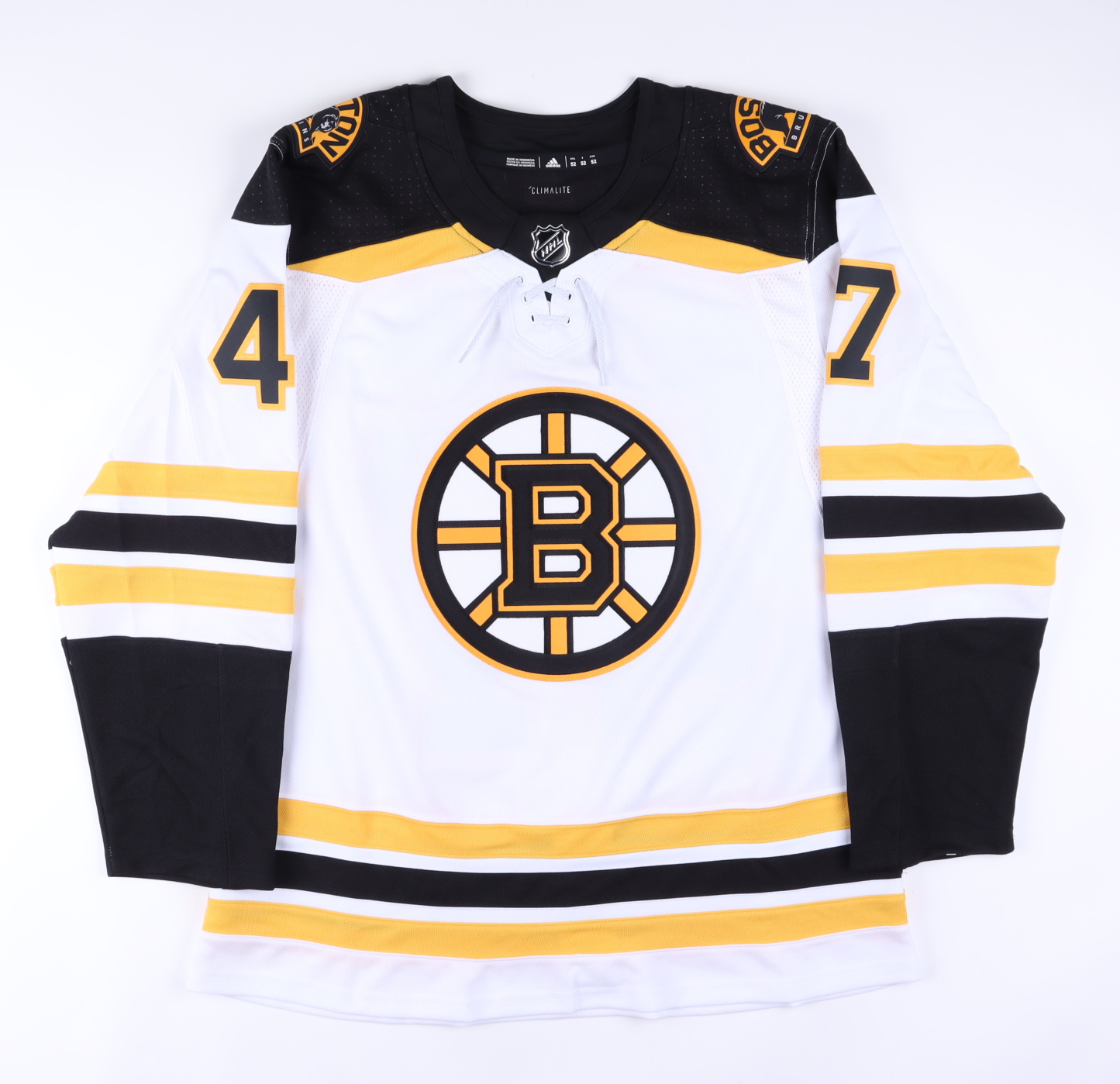 Boston Bruins authentic Adidas "Climalite" jersey. Everything is sewn on, size 52. The jersey is new with tags and has been hand-signed by Torey Krug.