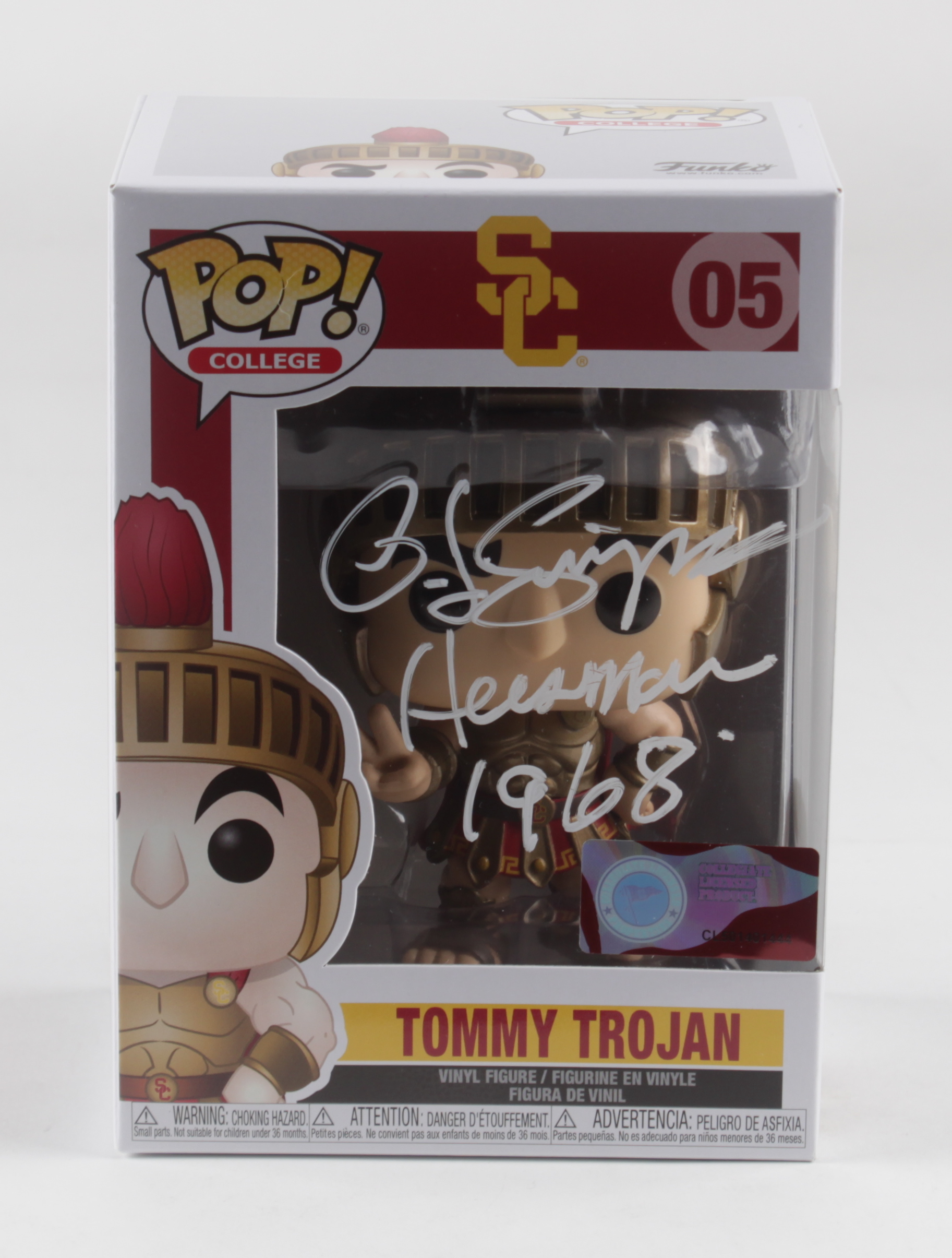 O. J. Simpson Signed USC Trojans #05 Tommy Trojan Funko Pop! Vinyl Figure Inscribed "Heisman 1968" (JSA COA)