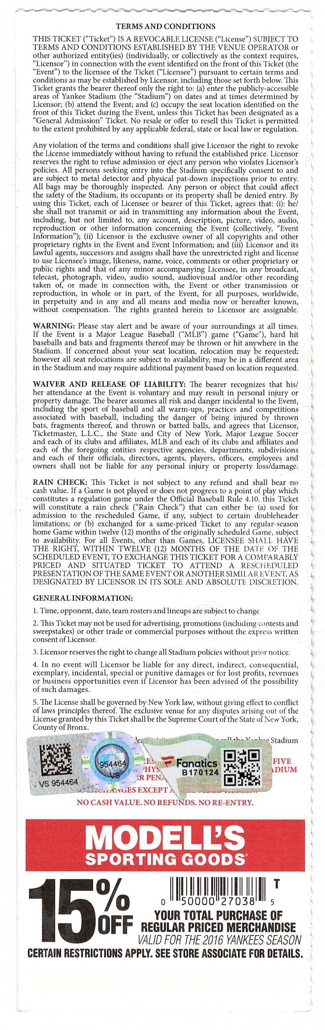 Aaron Judge Signed Yankees 2016 MLB Debut Game Ticket (Fanatics Hologram & MLB Hologram)