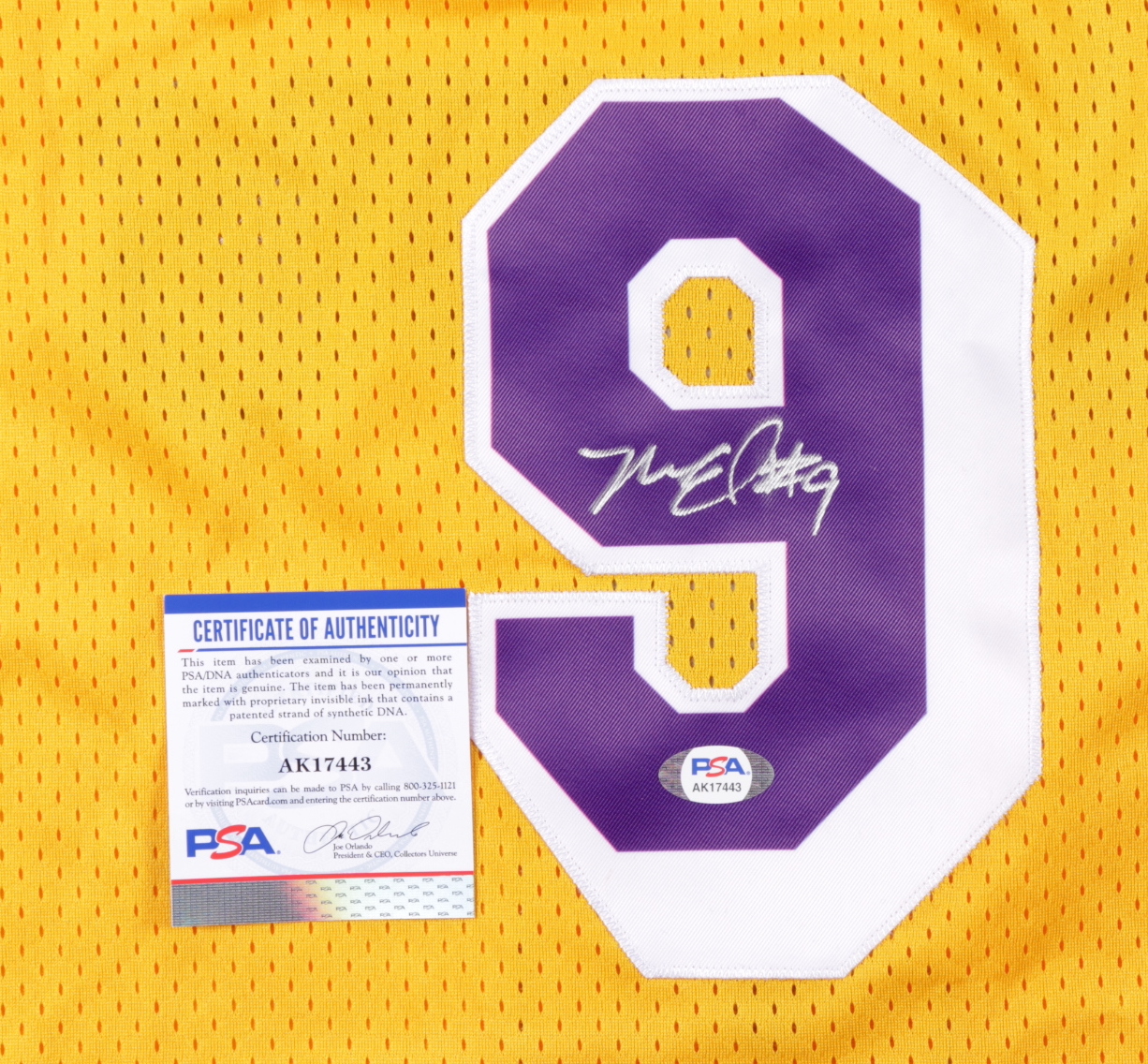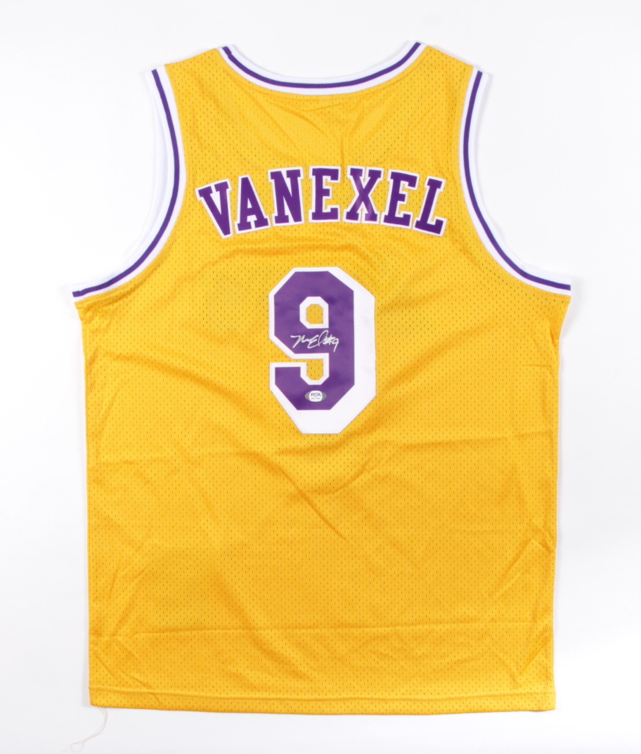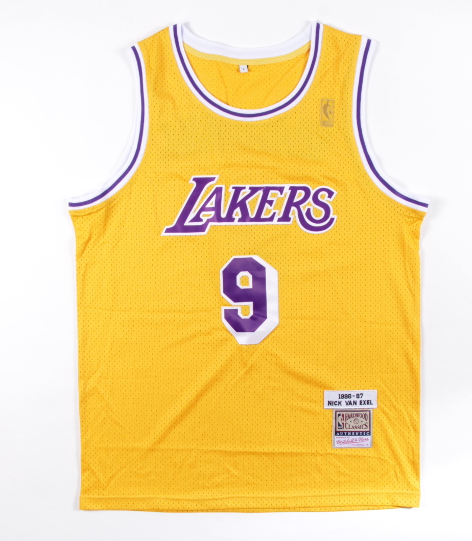 Custom on-court style jersey. Everything sewn on, size L. Hand-signed by Nick Van Exel.
