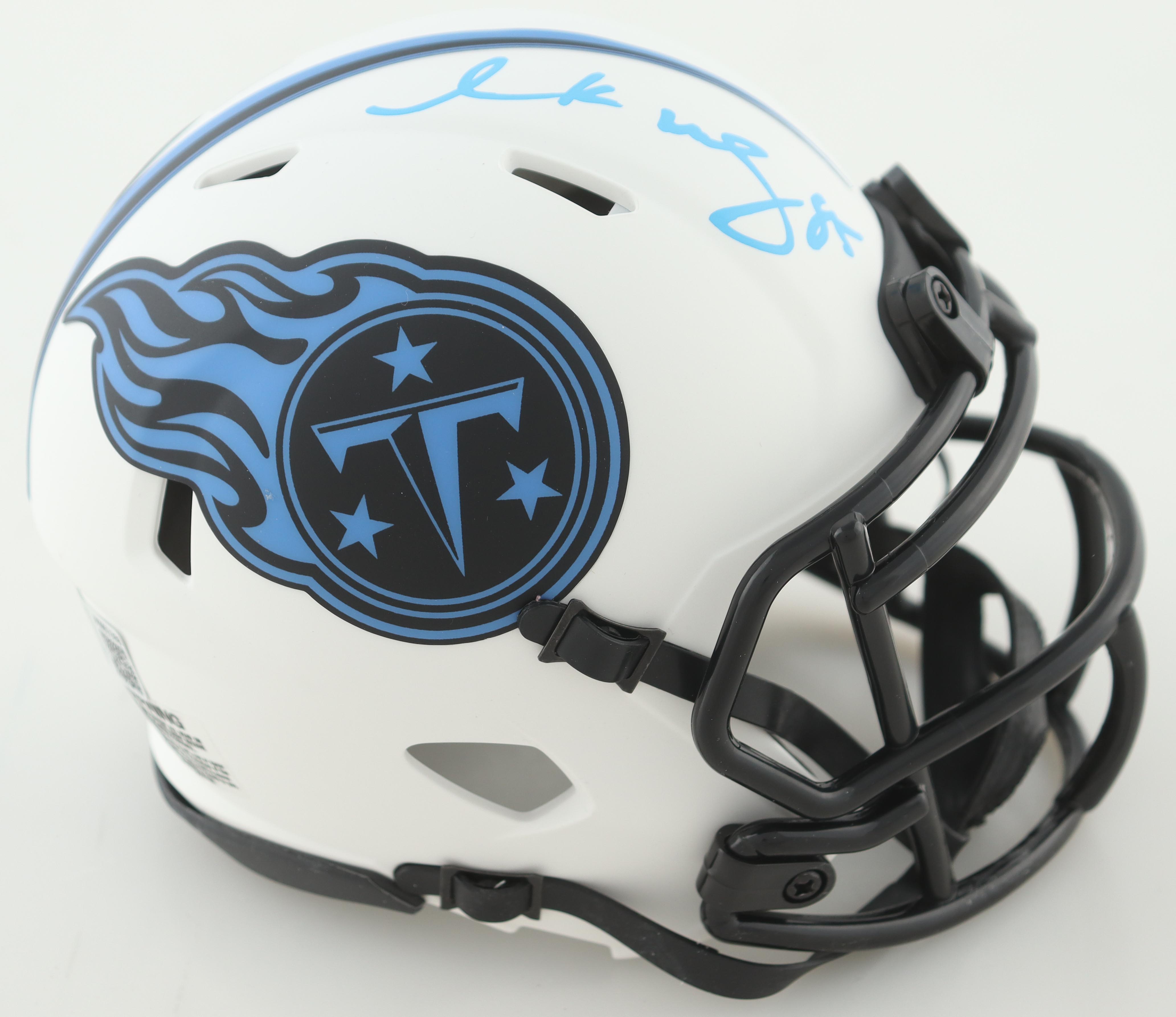 Riddell Tennessee Titans Lunar Eclipse Alternate Speed mini helmet. Hand-signed by Derrick Mason.
