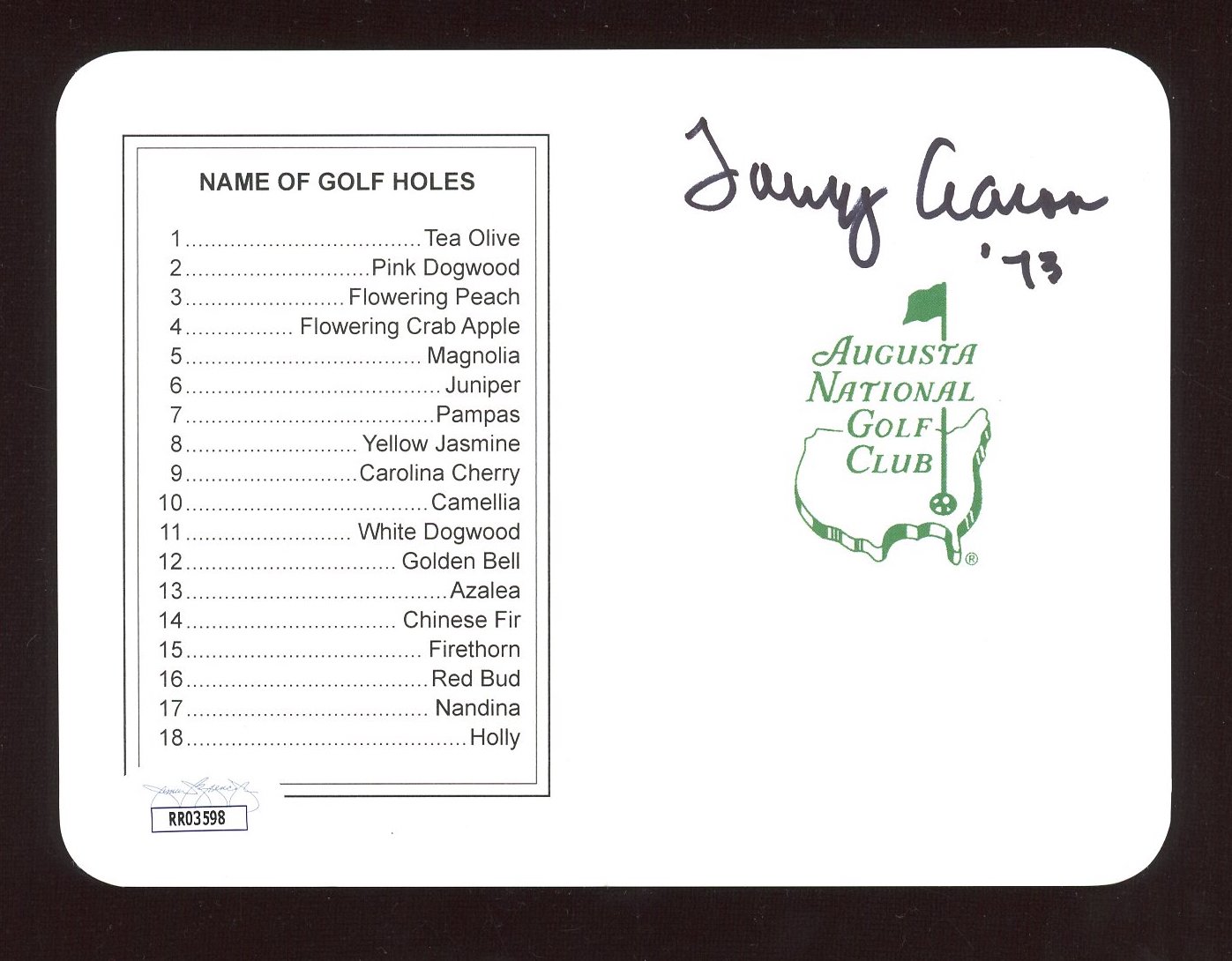 Tommy Aaron Signed Augusta National Golf Club Scorecard Inscribed "'73" (JSA)