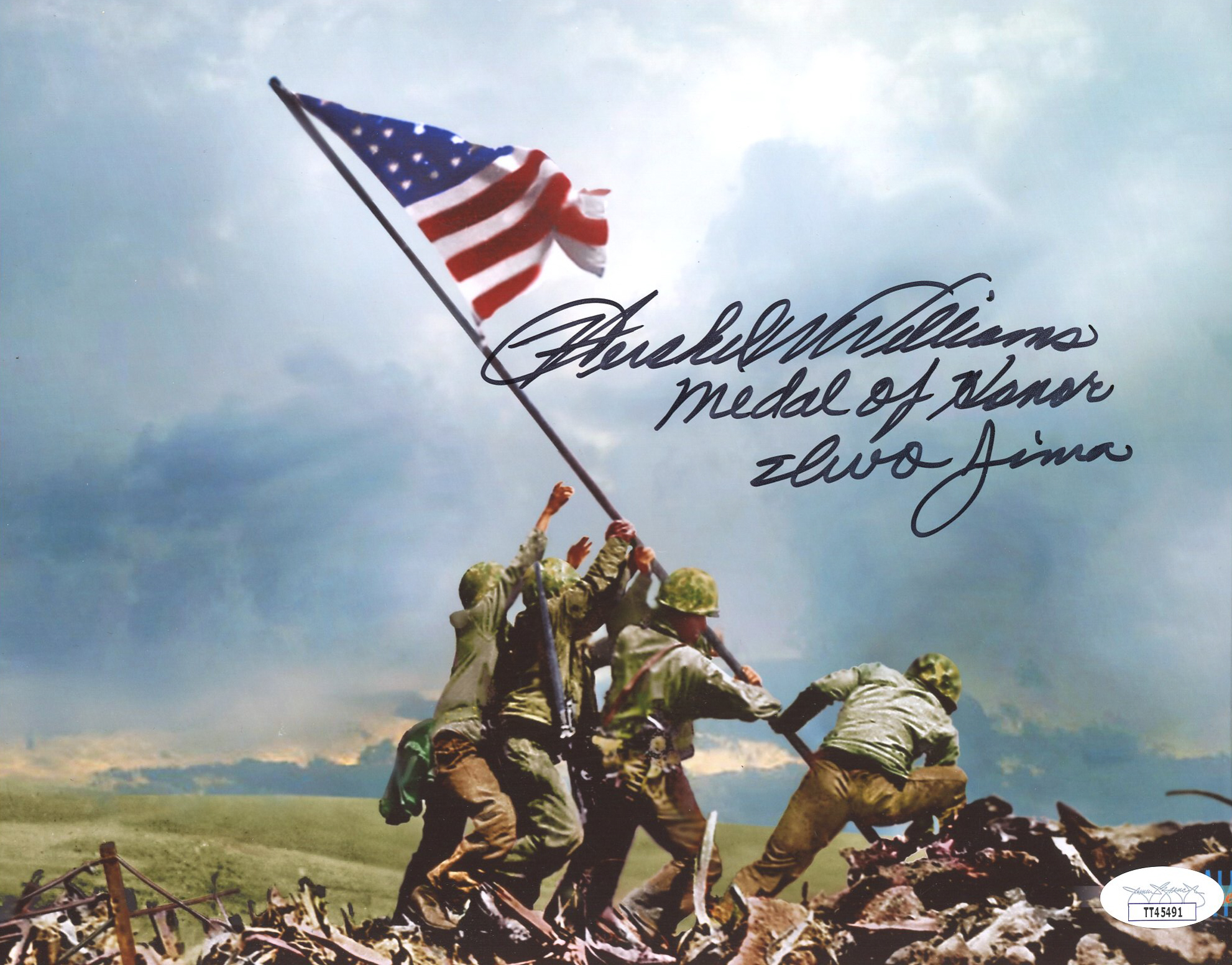 Photo measures 8" x 10" in size. Hand-signed and inscribed by Hershel Williams.