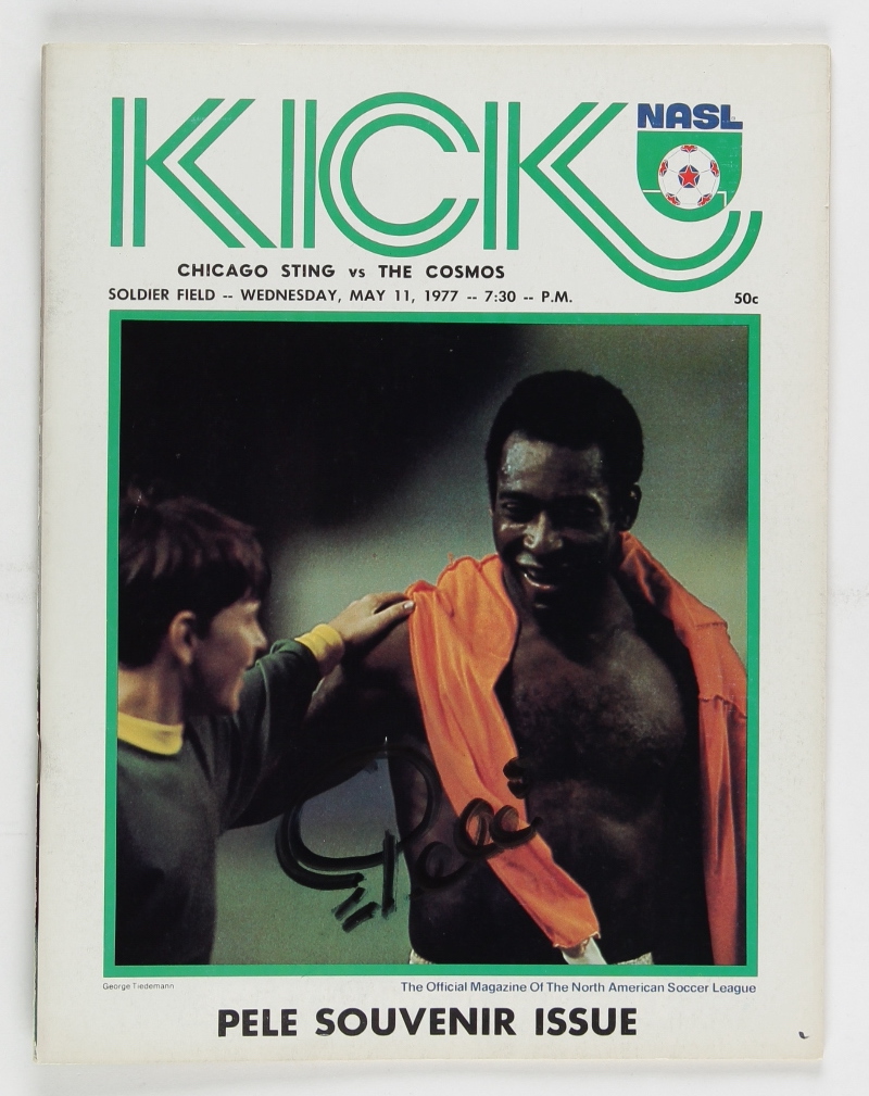 Pele Signed Vintage 1977 Cosmos Kickoff Souvenir Magazine (PSA)
