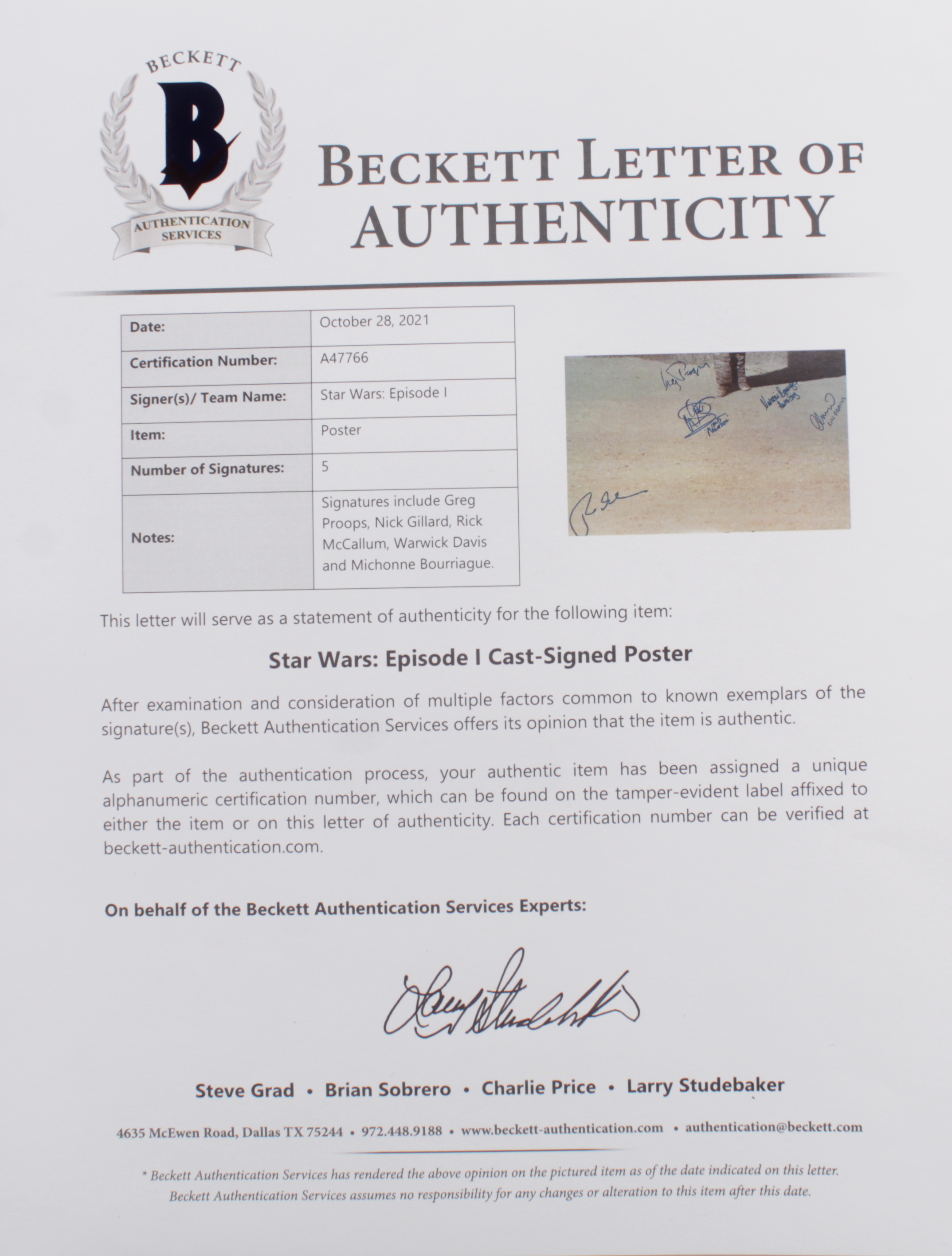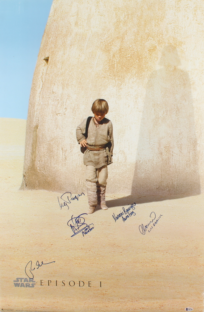 "Star Wars Episode I" Cast Signed 24x36 Poster with Greg Proops, Nick Gillard, Rick McCallum, Warwick Davis & Michonne Bourriague with Multiple Inscriptions (Beckett LOA)