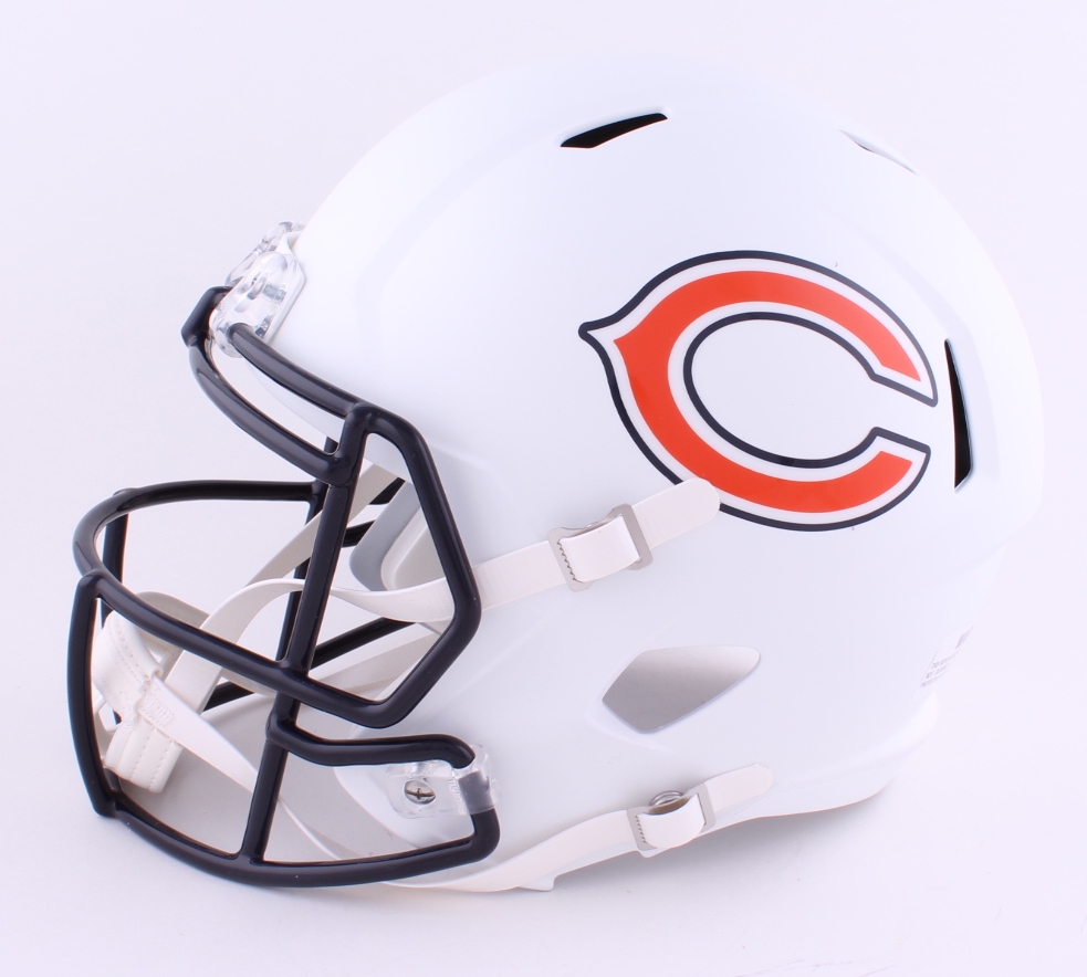 Riddell Chicago Bears full-size replica matte white speed helmet. Hand-signed by Charles Tillman.