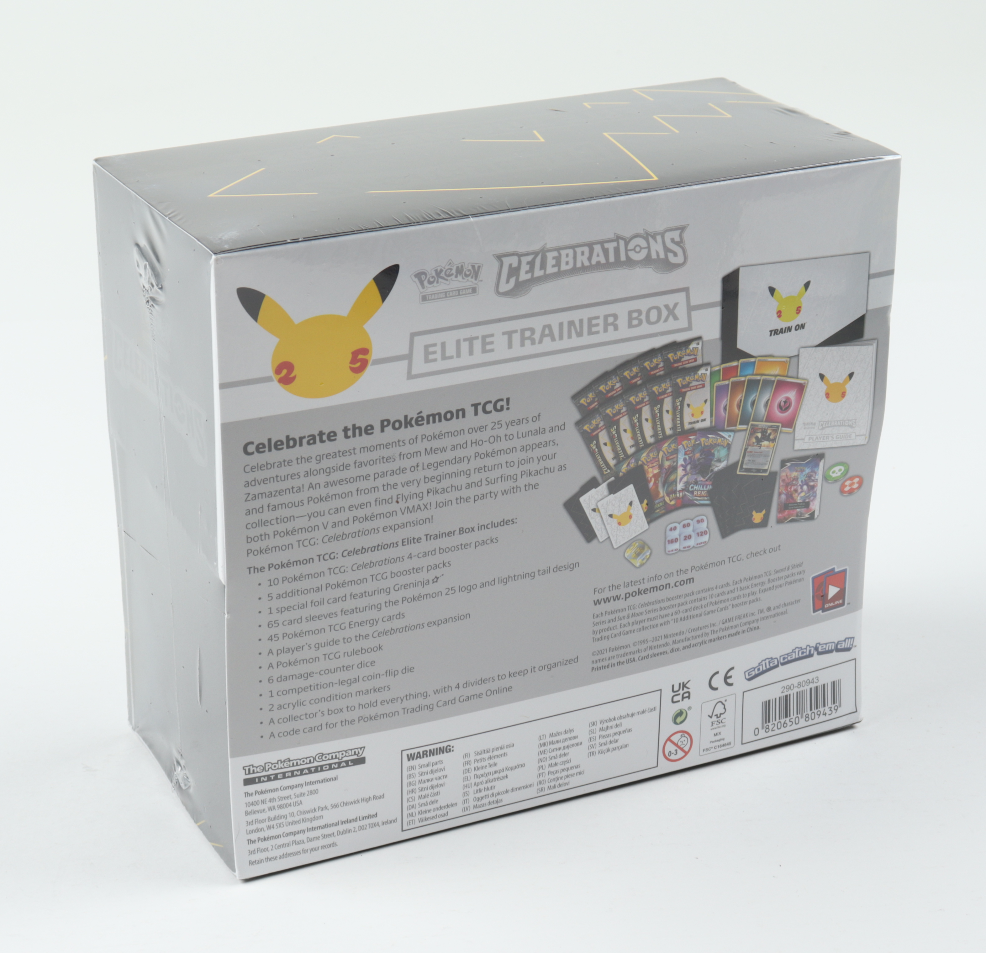 Celebrate the Pokémon TCG! Celebrate the greatest moments of Pokémon over 25 years of adventures alongside favorites from Mew and Ho-Oh to Lunala and Zamazenta! An awesome parade of Legendary Pokémon appears, and famous Pokémon from the very beginning return to join your collection—you can even find Flying Pikachu and Surfing Pikachu as both Pokémon V and Pokémon VMAX! Join the party with the Pokémon TCG: Celebrations expansion!