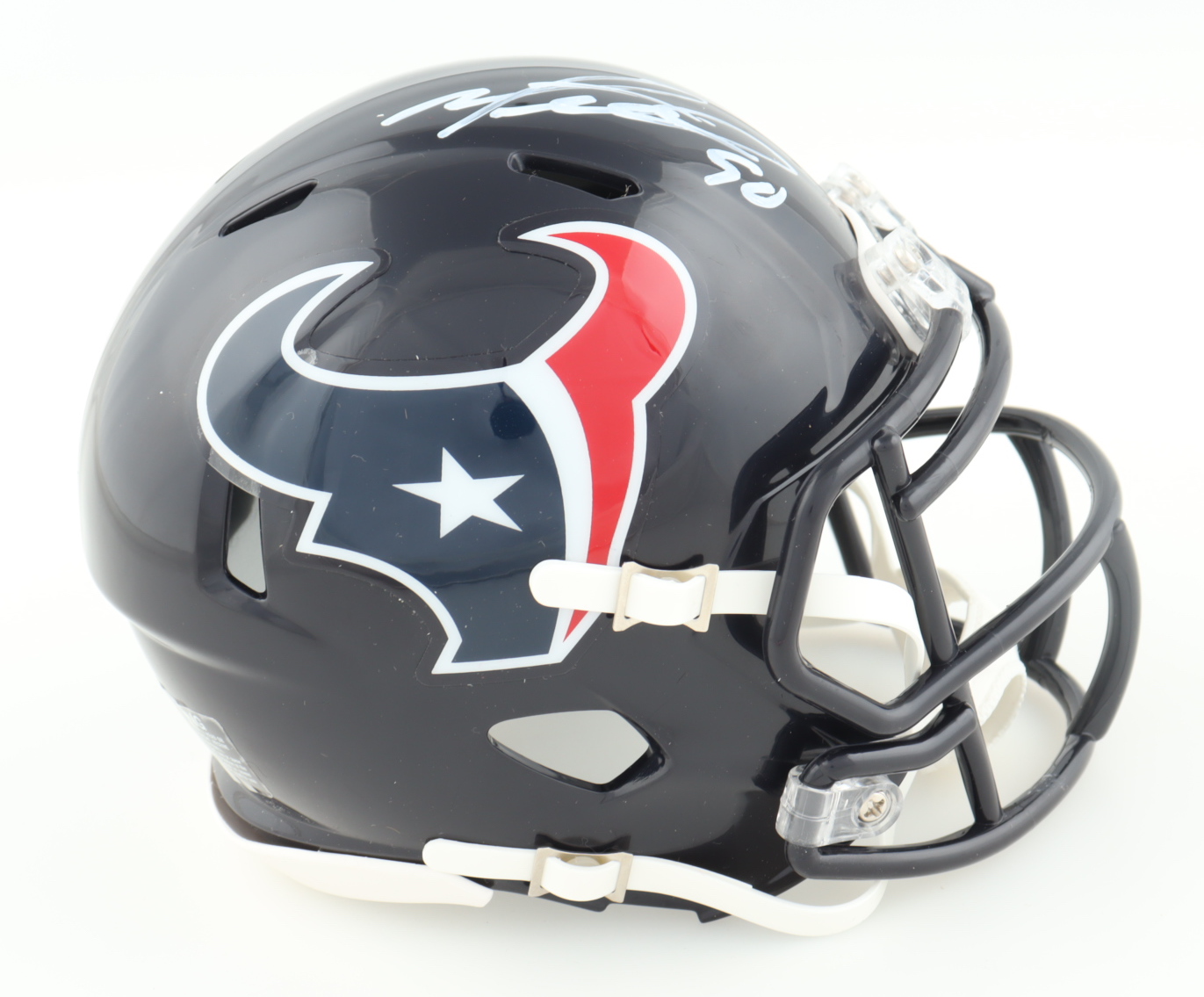 Riddell Houston Texans speed mini helmet has been hand-signed by Mario Williams.