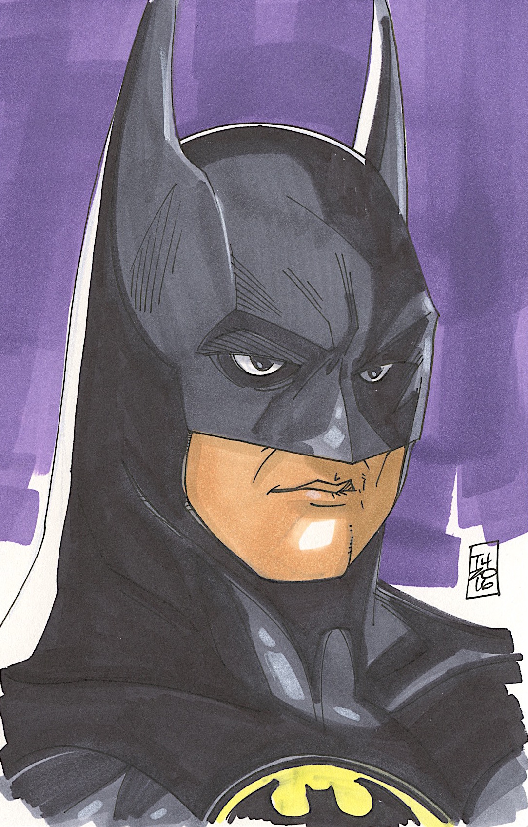 Batman (Michael Keaton) 1/1 ORIGINAL 5.5" x 8.5" Color Drawing on Paper Signed by Tom Hodges