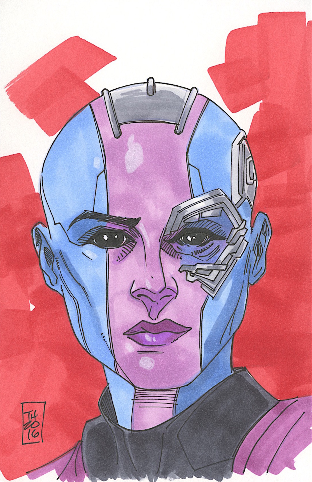 Nebula "Guardians of the Galaxy" 1/1 ORIGINAL 5.5" x 8.5" Color Drawing on Paper Signed by Tom Hodges