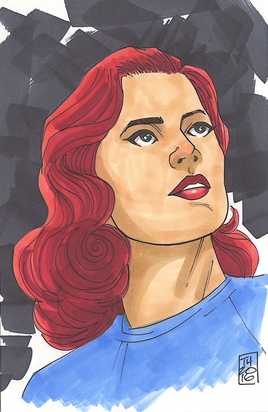 Agent Carter 1/1 ORIGINAL 5.5" x 8.5" Color Drawing on Paper Signed by Tom Hodges
