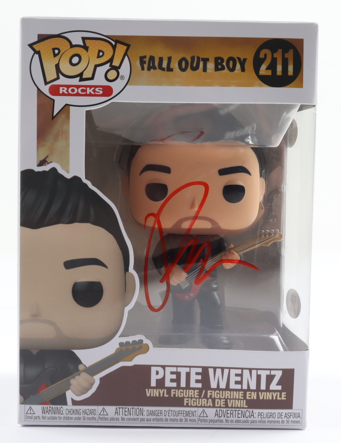 Funko Pop! vinyl figure measures approximately 4" tall and is hand-signed by Pete Wentz.