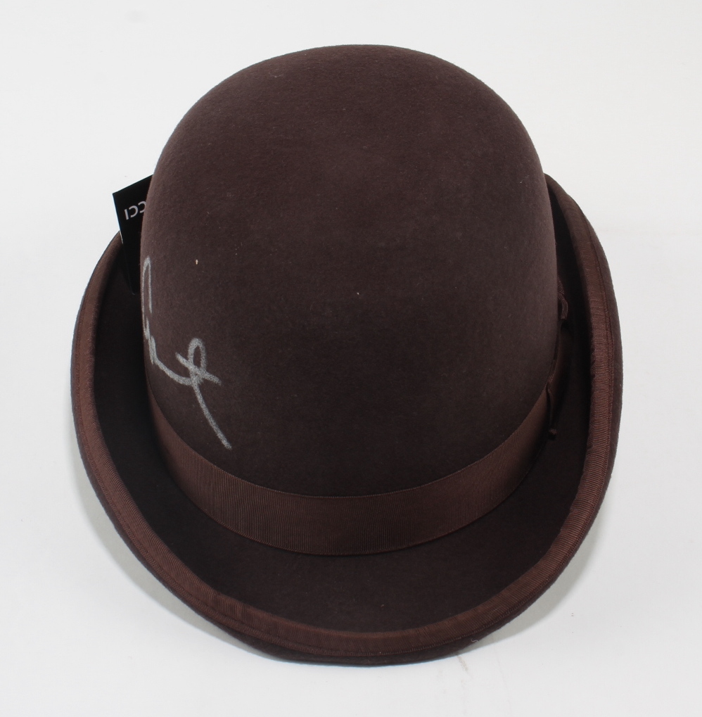 Ferrecci brown derby hat, size L. Hand-signed by Emilio Estevez (Billy the Kid).