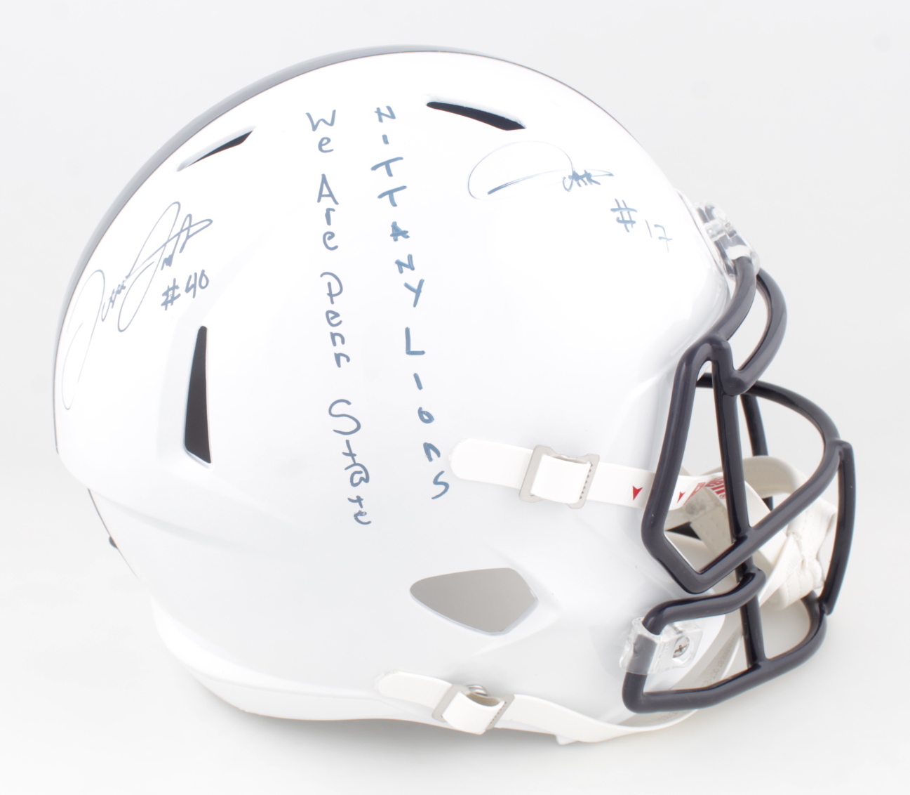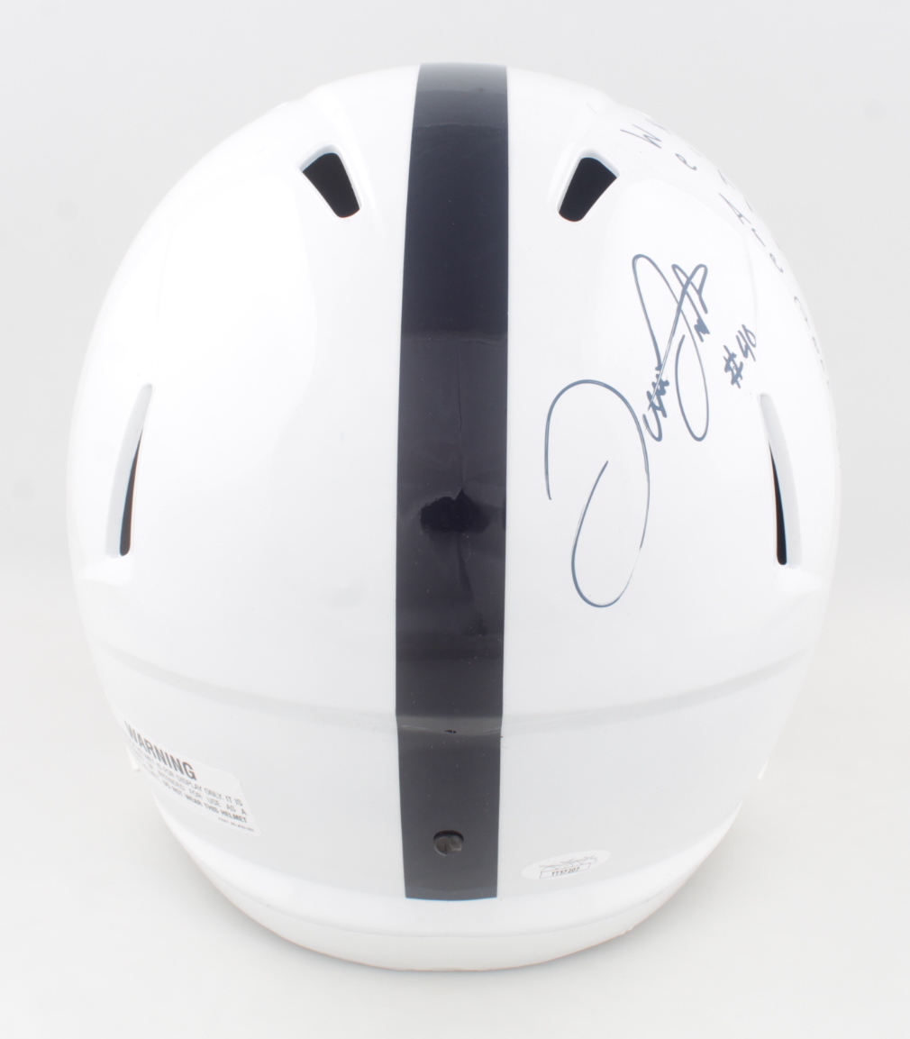 Riddell Penn State Nittany Lions full-size replica speed helmet has been hand-signed and inscribed by Jesse Luketa and Arnold Ebiketie. Please see photos for more details regarding the condition of the signatures and inscription.