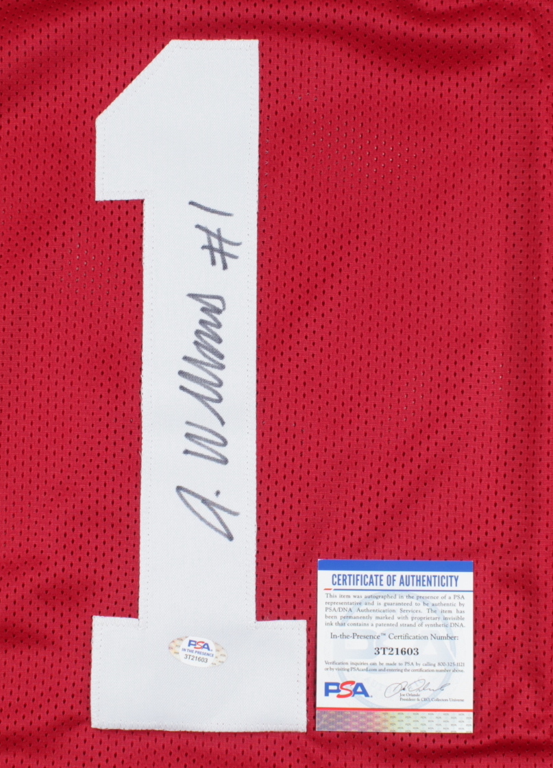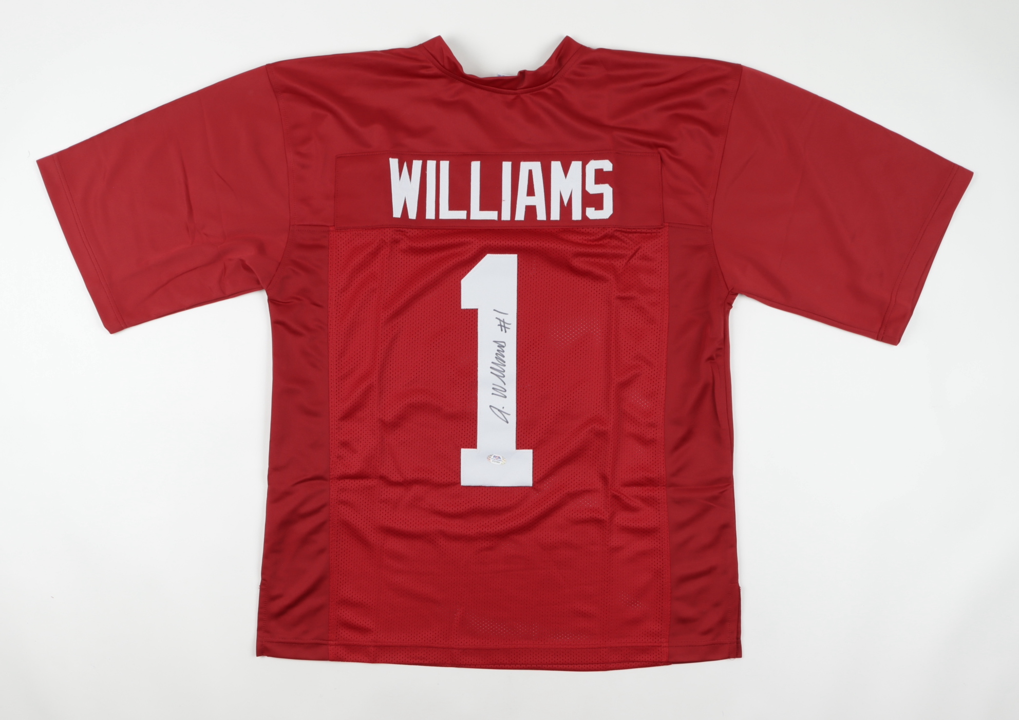 Custom on-field style jersey. Everything is sewn on, size XL. Hand-signed by Jameson Williams. See photos for condition of the jersey.
